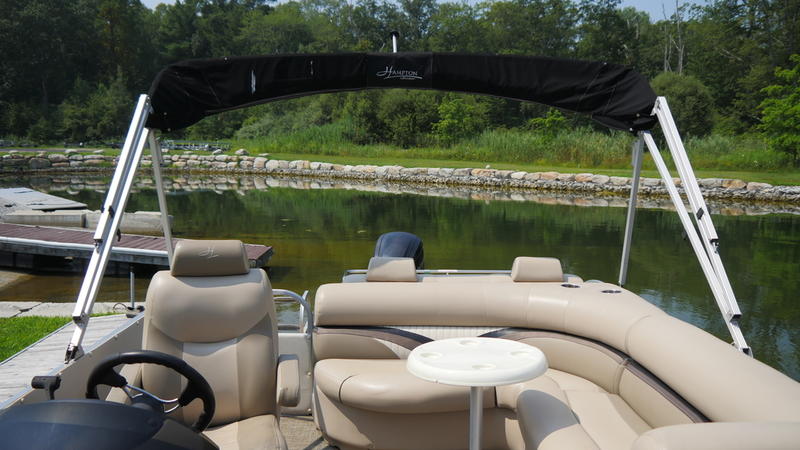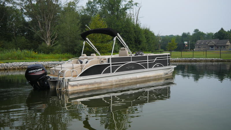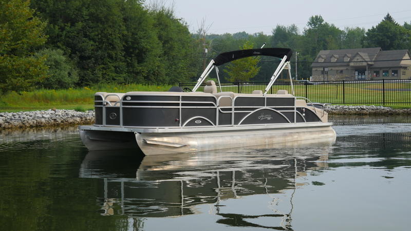 This 2015 Hampton 2485 is powered by a Mercury 115 HP command thrust motor, having only ever been used on Lake Hopatcong NJ .