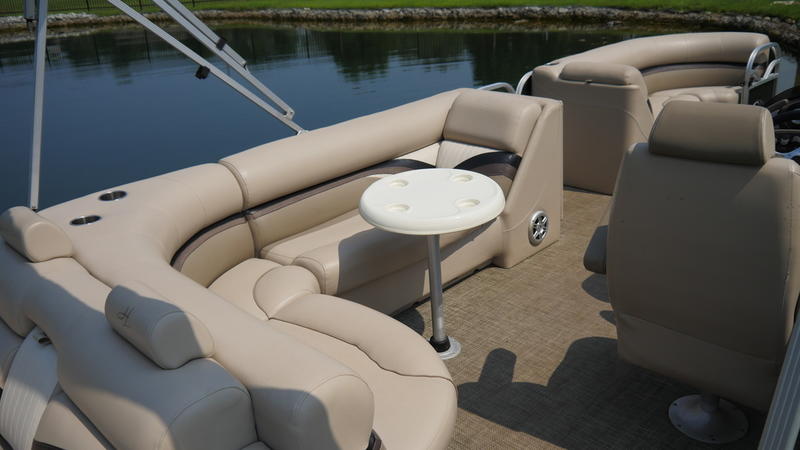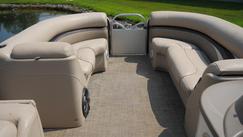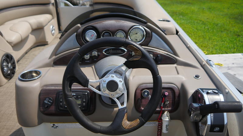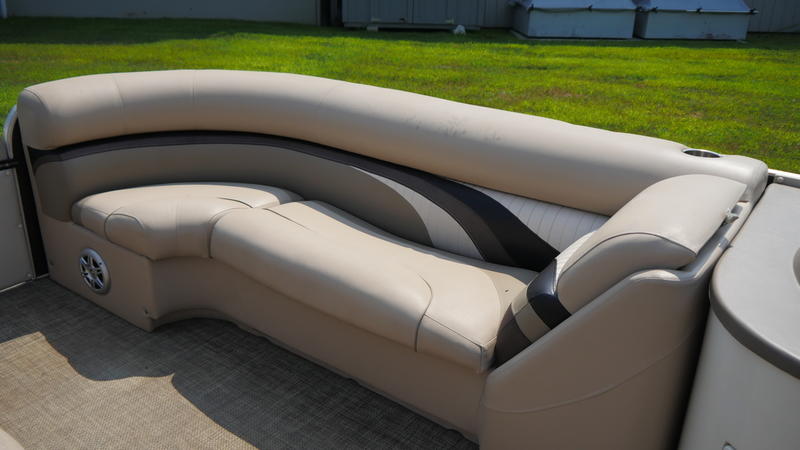 Boat was just serviced and comes with a full mooring cover. Upholstery is all around in good conditon, showing some minor signs of sun damage. Port side pontoon does have a dent in the rear of the tube, but has been pressure tested and is in good conditon.