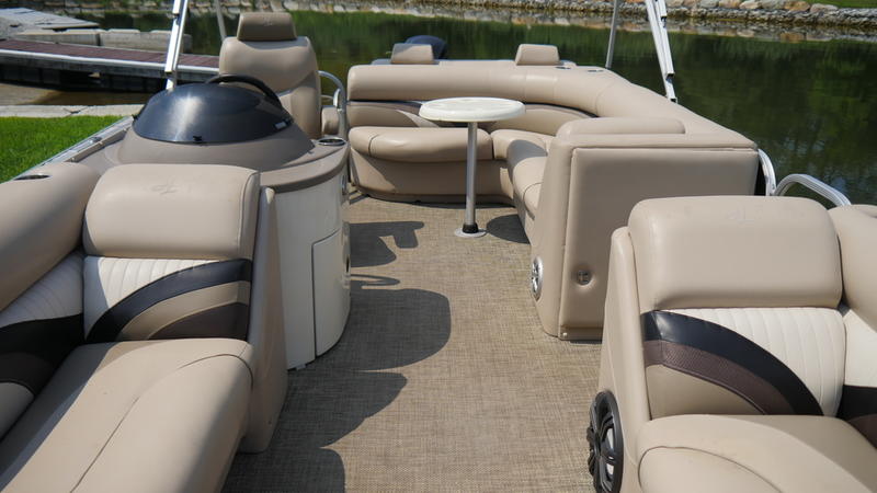 Boat was just serviced and comes with a full mooring cover. Upholstery is all around in good conditon, showing some minor signs of sun damage. Port side pontoon does have a dent in the rear of the tube, but has been pressure tested and is in good conditon.