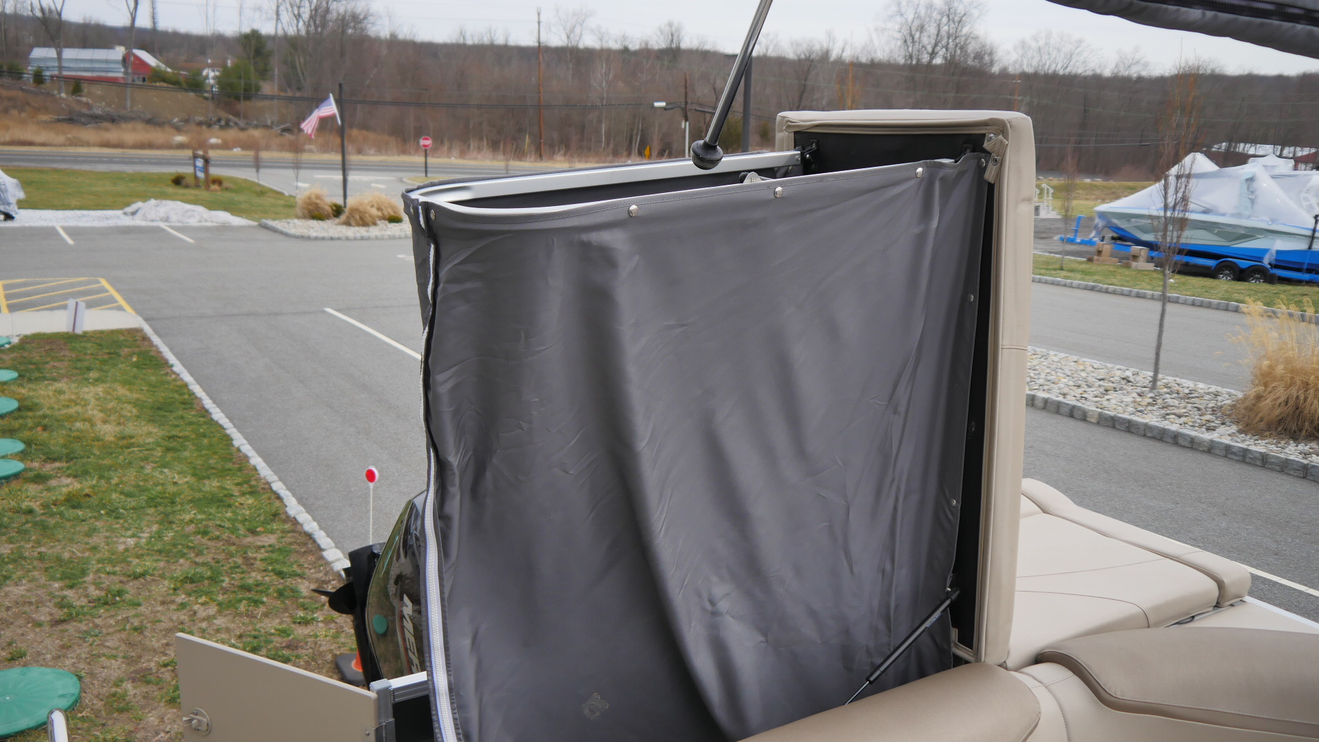 Convenient rear pop-up changing room provides a private space for changing clothes or getting ready for a swim, making your time on the water more comfortable for everyone onboard.