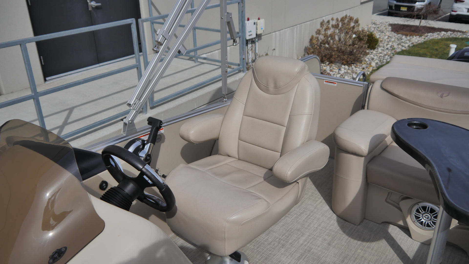Convenient rear boarding ladder allows for easy entry and exit when swimming or enjoying watersports.