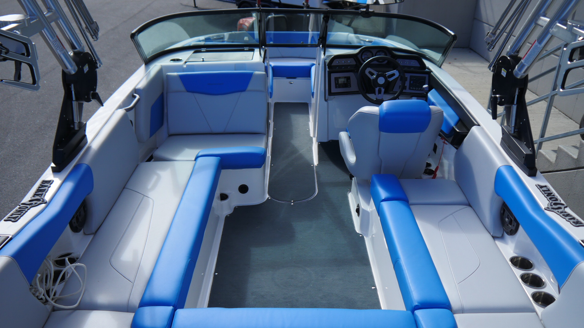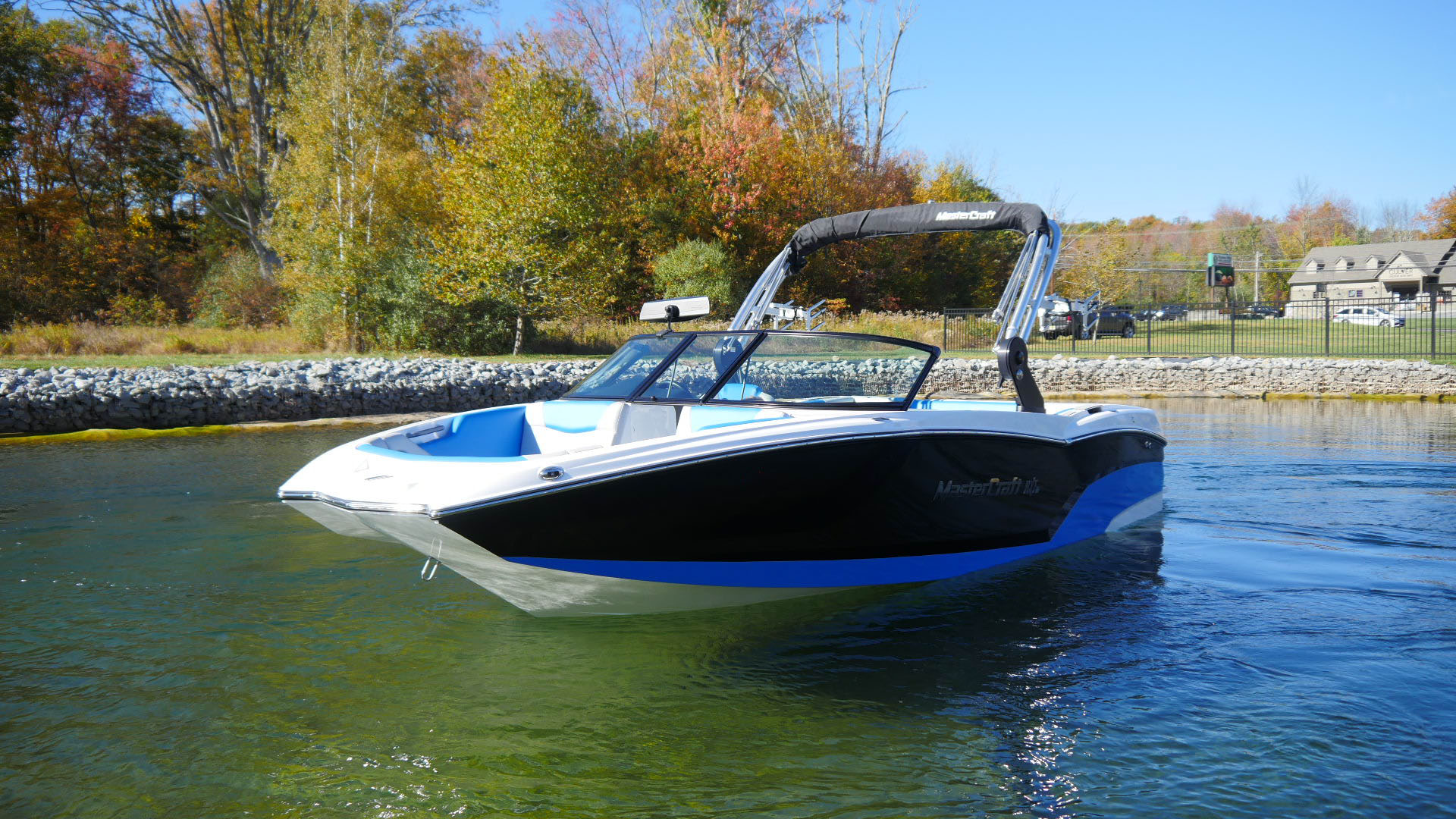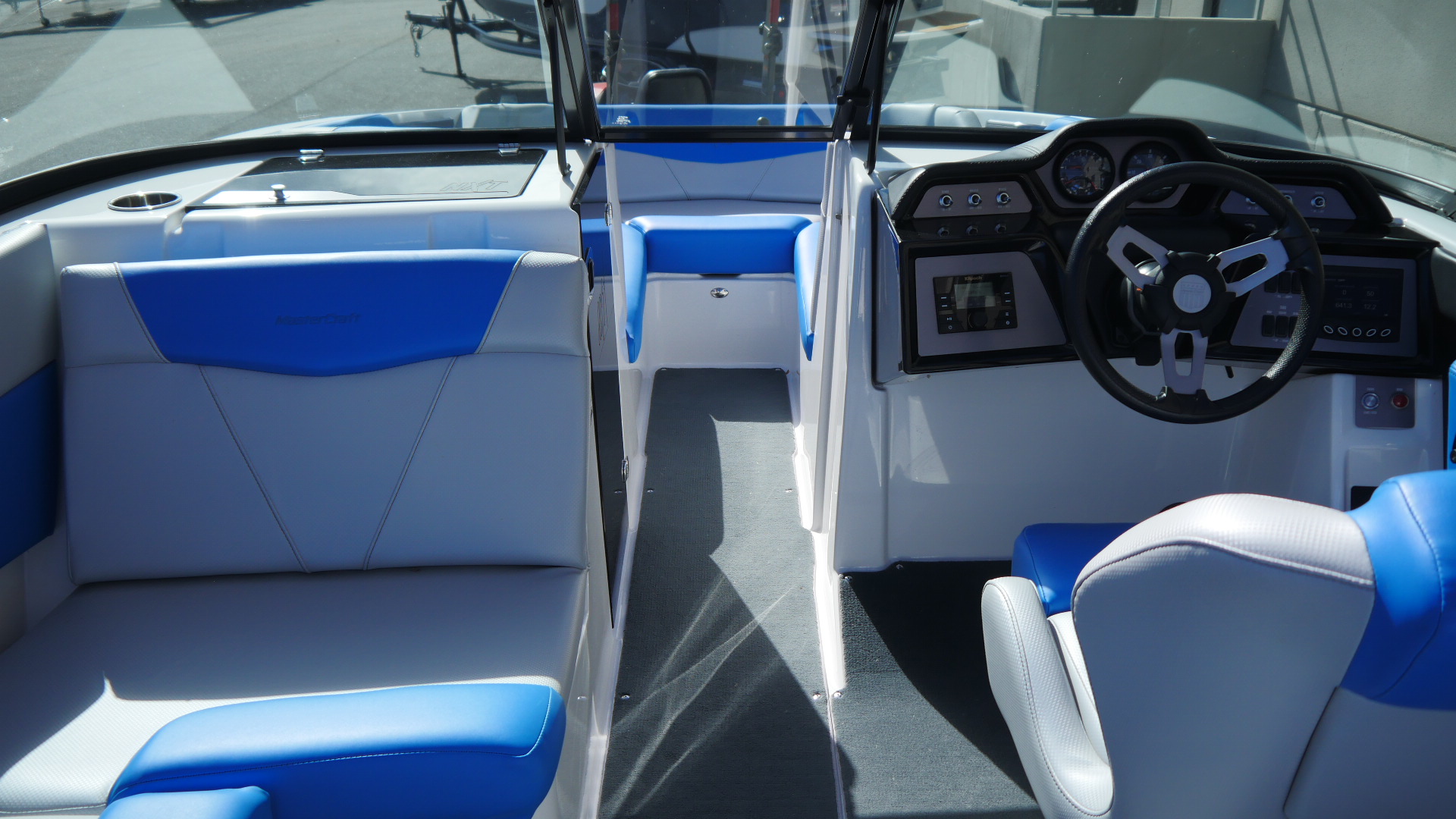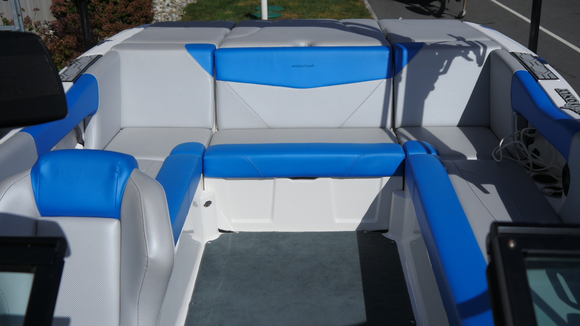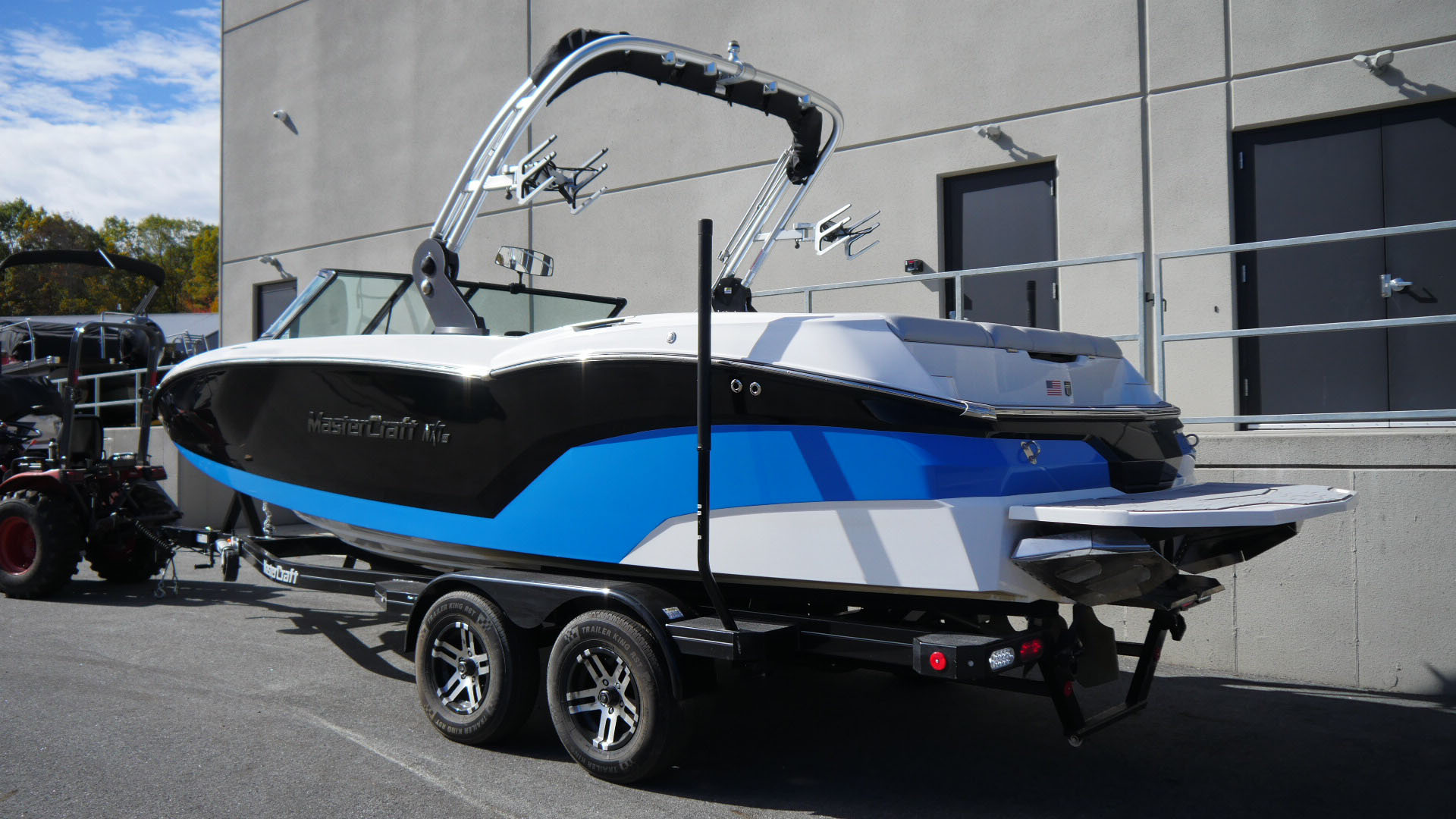 The boat is equipped a Gen 2 Surf system, Bimini, Towable/Mooring Cover, Heater, snap out carpet, fiberglass swim platform, Klipsch Stereo, walk thru air dam door, and MasterCraft Tandem Axle Trailer
