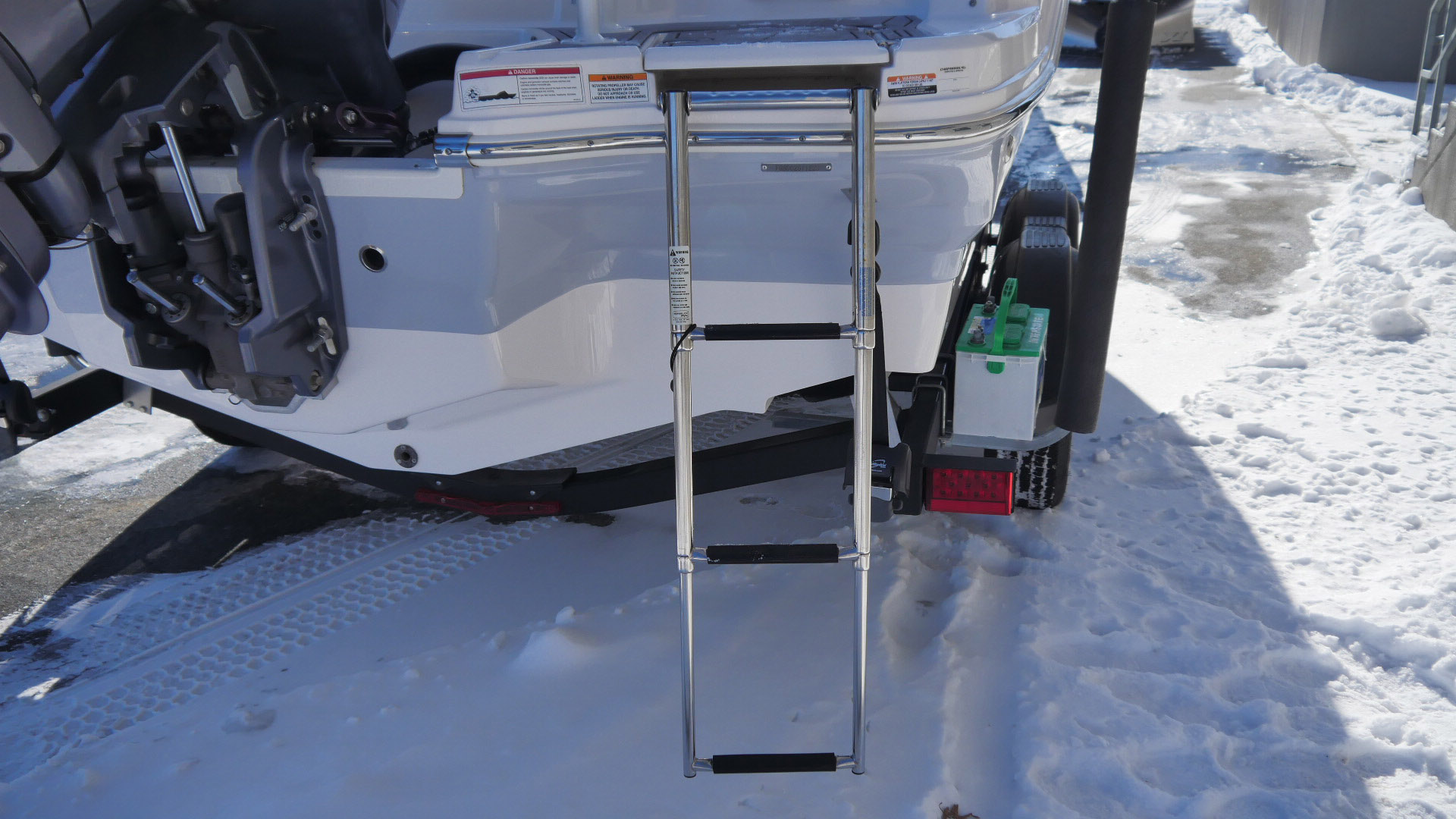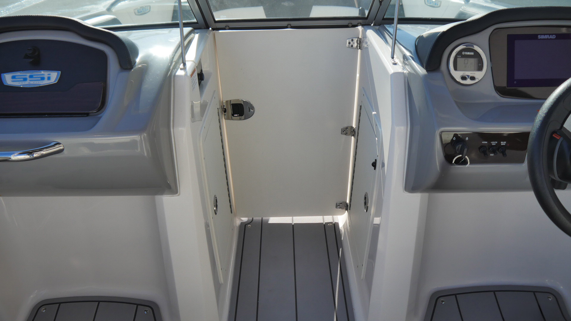 A walk-thru transom DamDoor adds safety and convenience by closing off the bow entry while underway.