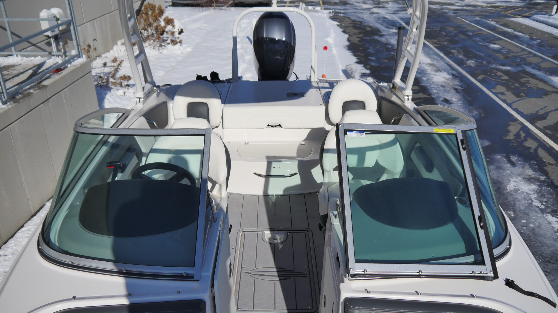 The Sport Tower adds a bold, athletic look while providing an elevated tow point for skiing and wake sports, paired with an integrated Bimini top for shade and comfort.