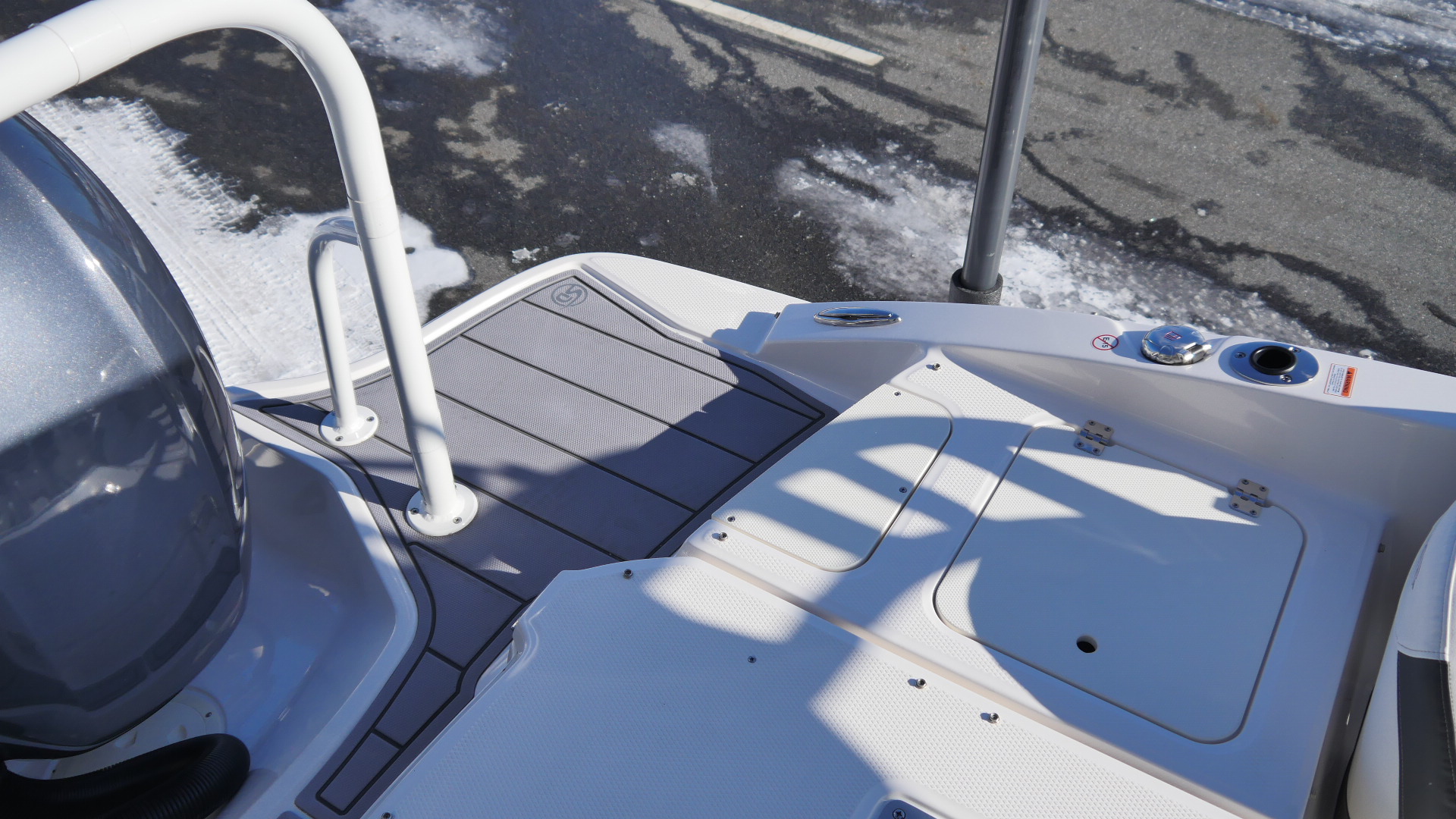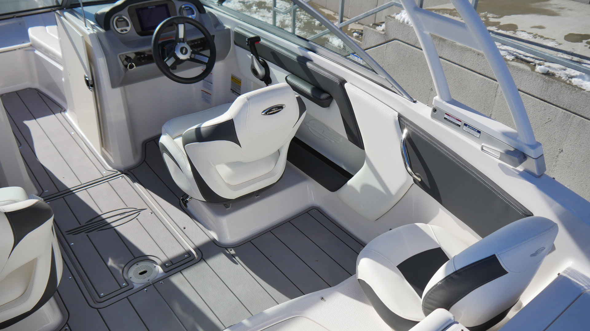 Premium snap-in marine mat flooring offers a soft, slip-resistant surface that’s easy to remove, clean, and maintain.