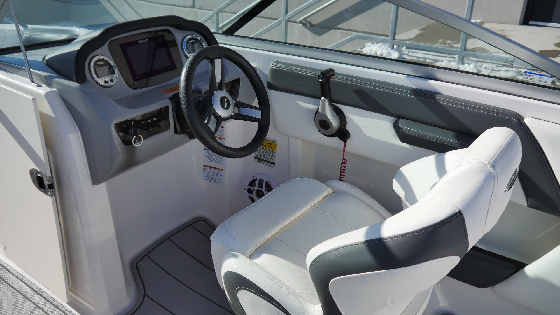 - Color Selection for Hull Side Gelcoat with Color Matched Deck Graphics (Alloy Gray, Biscayne Blue, Black, Fire Red, Steel Blue or White) – With White Hull Side Selection Deck Graphics are Available in Any Color