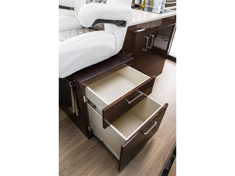 • Interior bulkheads, cabinets and drawers are precision cut, hand-crafted and constructed from a selection of woods and high-pressure laminates. Drawers are lined with laminate.