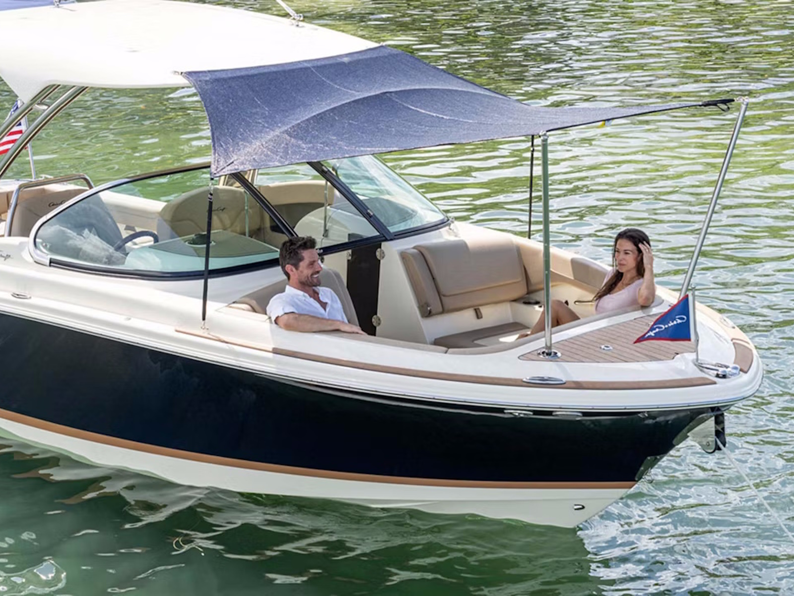 The u-shaped bow seating includes forward-facing sunloungers with USB charging ports and plenty of cupholders nearby. Chris-Craft upholstery combines the finest marine-grade vinyl with high-density foam featuring antimicrobial and quick-drying properties for easy living.