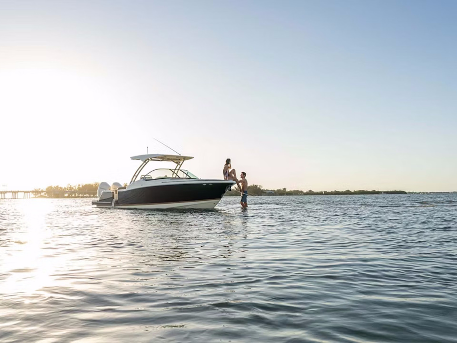 The Calypso 28 offers ample space and all the essential amenities for hosting memorable excursions. For easy access to the dock and the water, a starboard side-boarding door and extended swim platform are both standard. Select the Heritage Edition to enjoy teak accents throughout, including the covering boards, the swim platform, and a full teak floor.