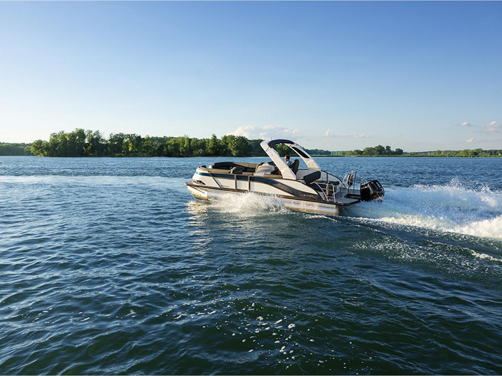 With a totally redesigned look, the Grand Mariner stuns everyone on the lake with it's sweeping lines and sloped silhouette. Our soft-touch vinyl and luxurious furniture keep your family comfortable, while the Mercury engine puts plenty of power for watersports at your fingertips.