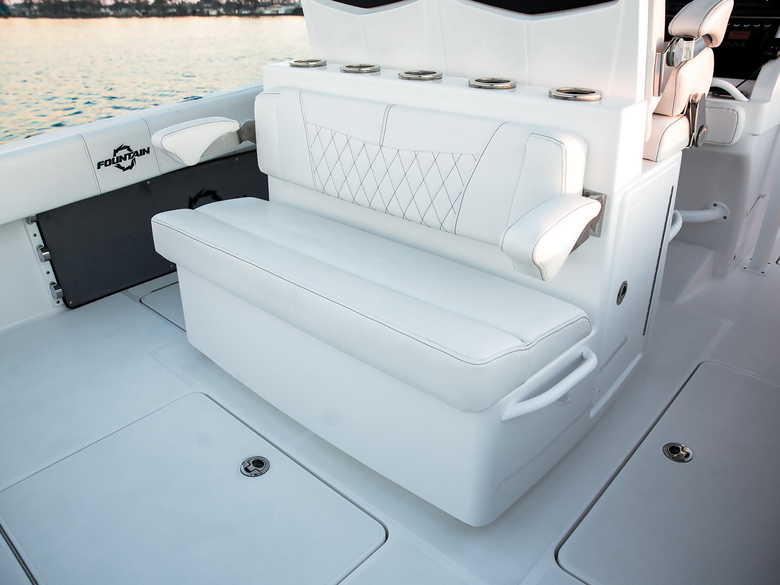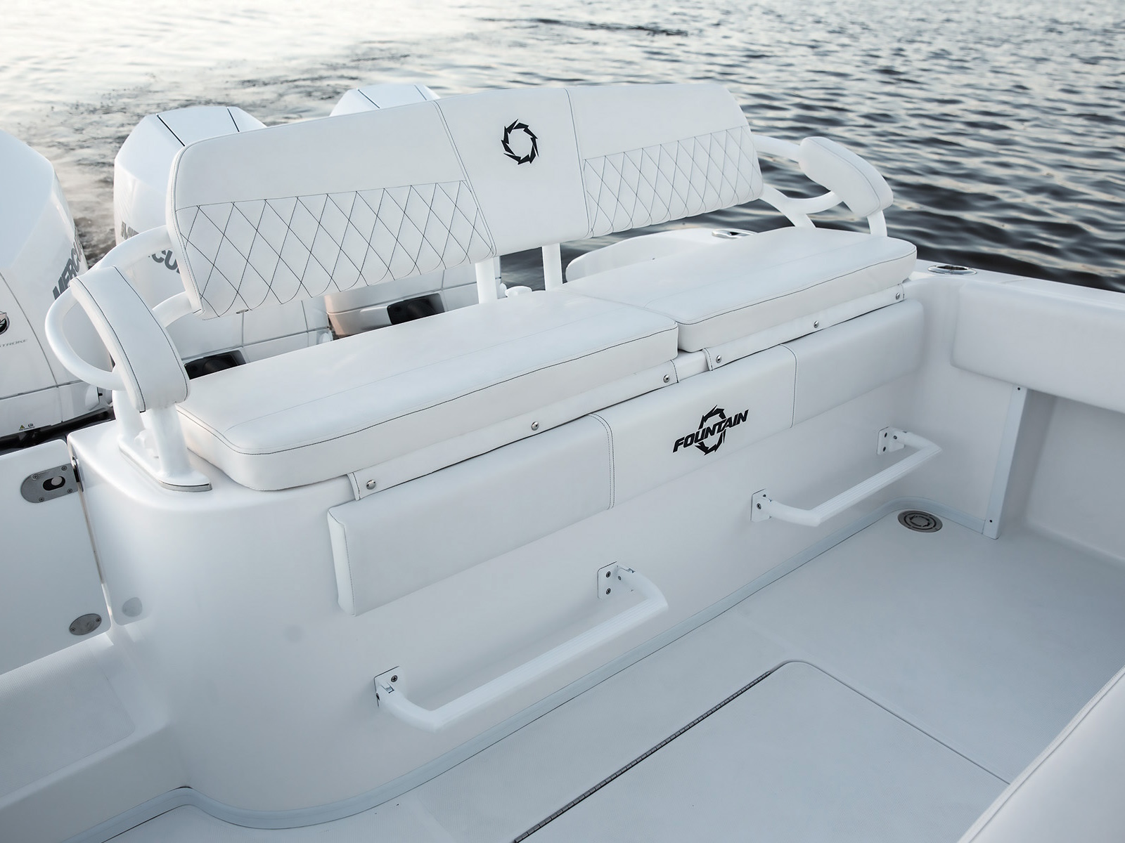 "Versatility" is the one catch-all word that best describes the legendary 34 CC. Yes, runaway top-end numbers give Fountain clear bragging rights, but construction quality and attention to detail are likewise key parts of our performance advantage. Fountain's three-piece construction, fiberglass stringer grid, and composite cored hull sides won't flex no matter what the sea conditions. Whether you opt for twins or triples, a long-range 418-gallon fuel capacity means more time on the water for family adventures and less time at the fuel pump.