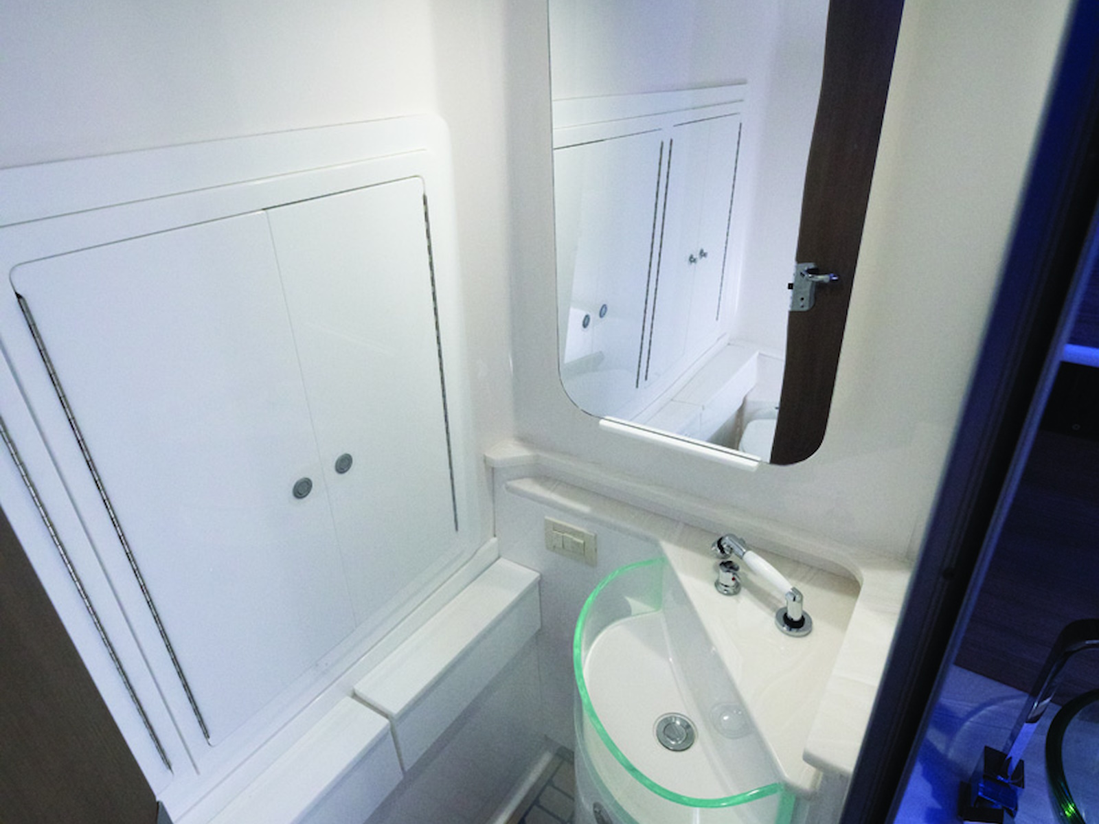 - Head - Enclosed, Vanity, Ceramic Toilet, Fresh Water/Raw Water Holding Tank