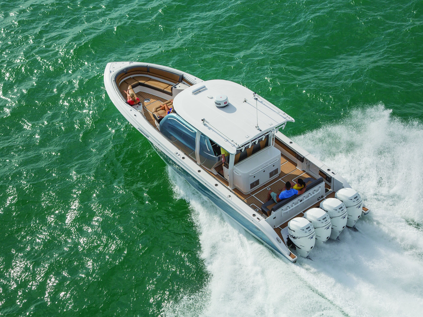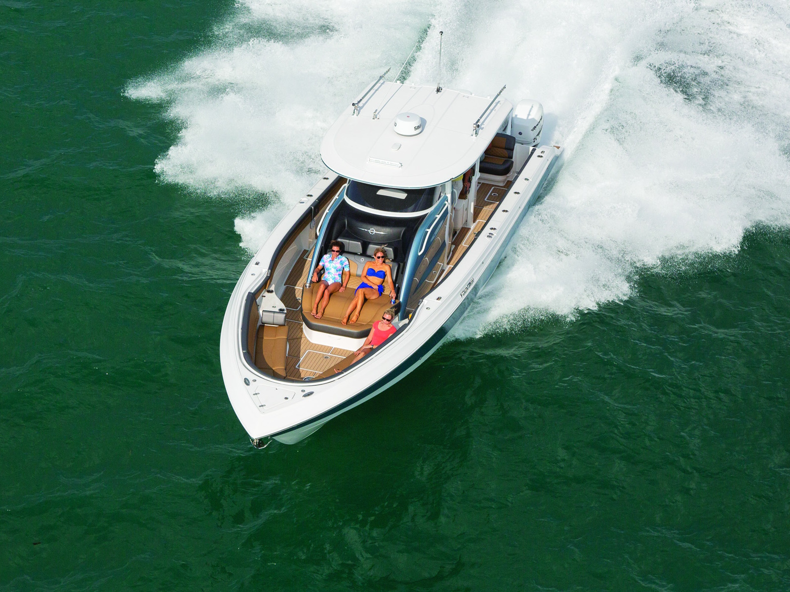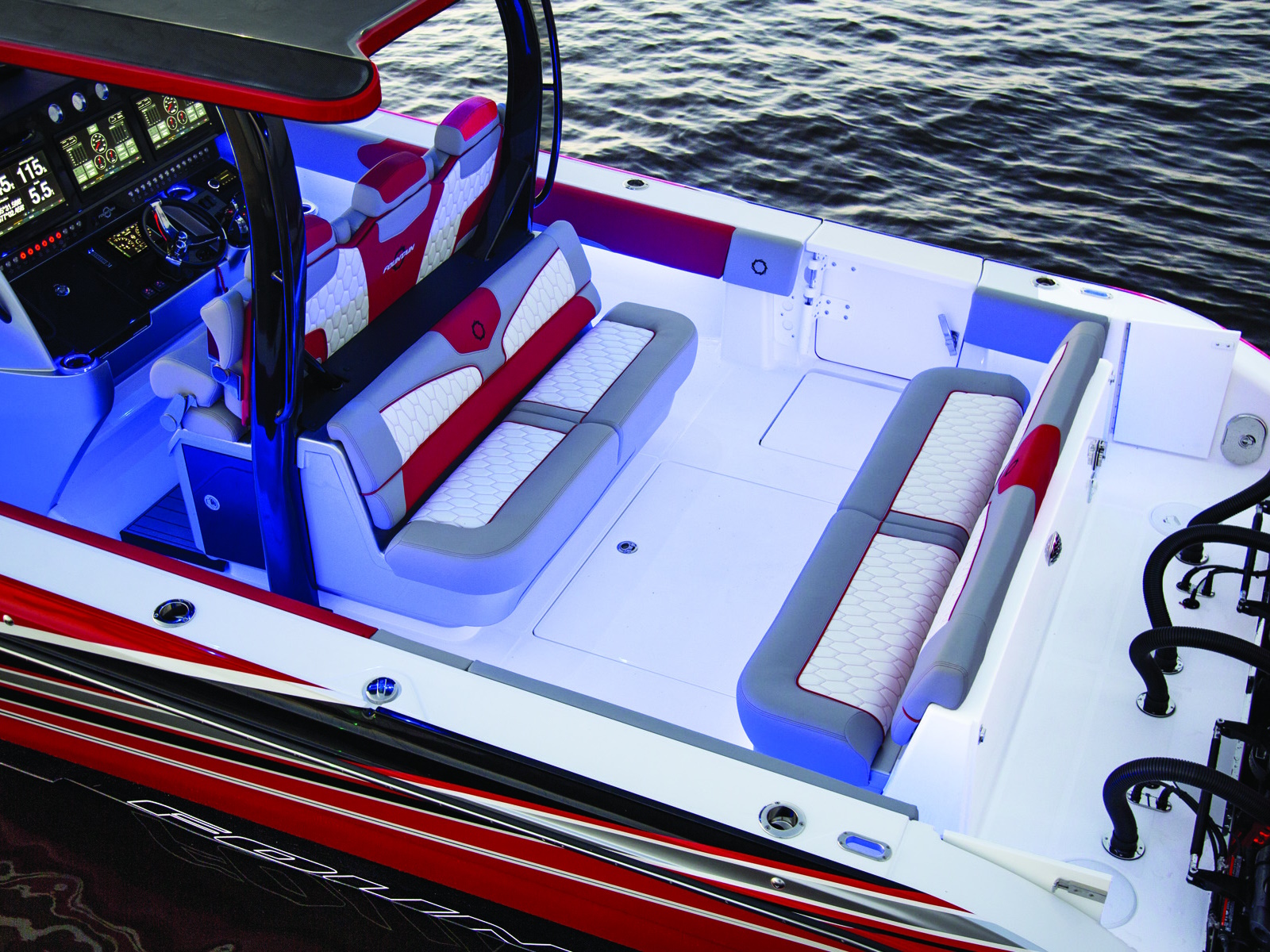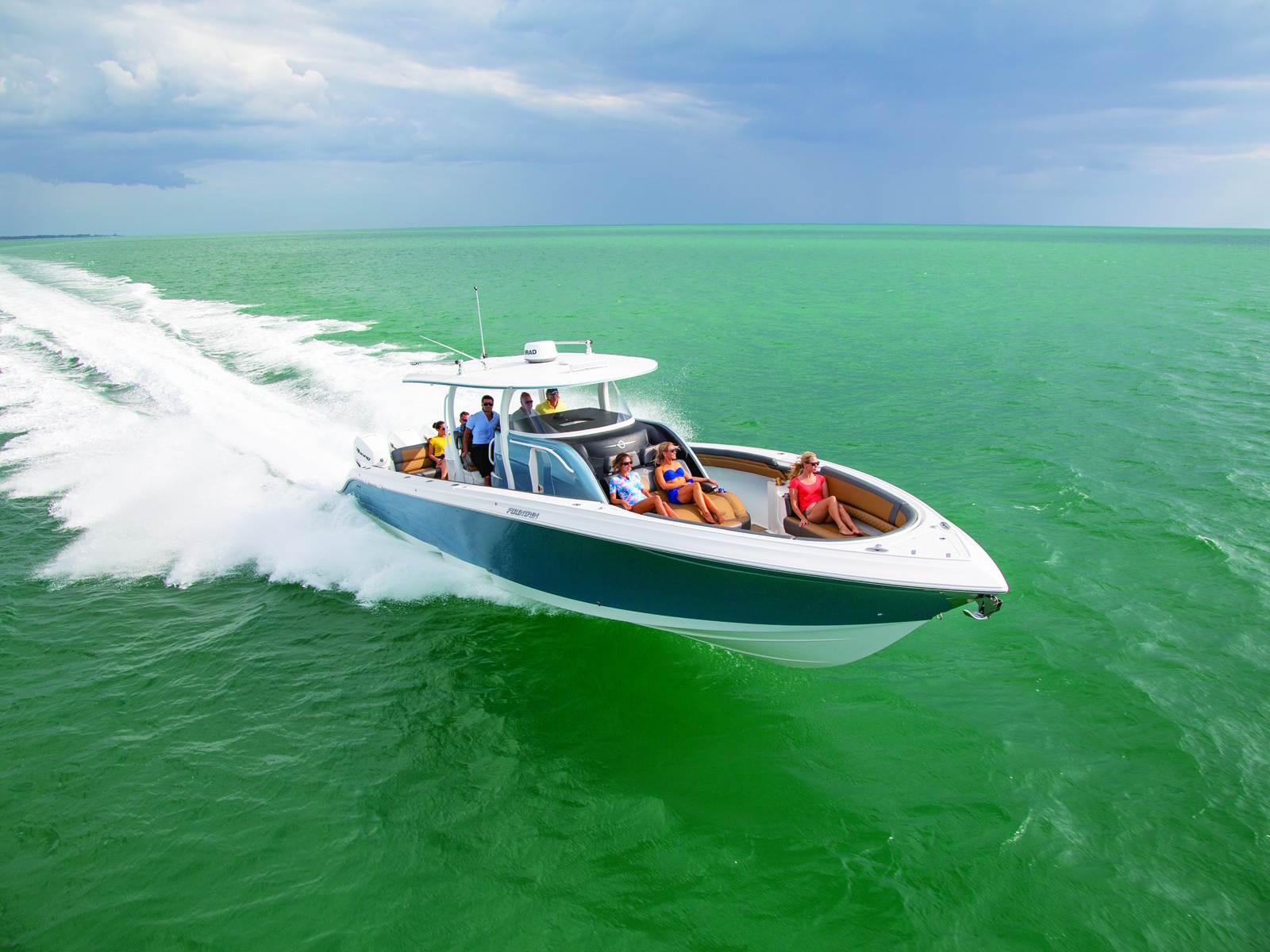 You've just arrived at the top of the line. The sensational Fountain 43NX blends luxury, performance, and style better than any center console in this size range. Fountain is synonymous with exciting top-end, controlled midrange, and a dry ride, and the 43NX more than delivers. Everywhere you look, there's seating: wraparound cushions surround the bow, a spacious chaise lounge tops any tanning salon, adjustable bolsters inspire big water confidence, and a full-width stern bench says "Welcome Aboard".