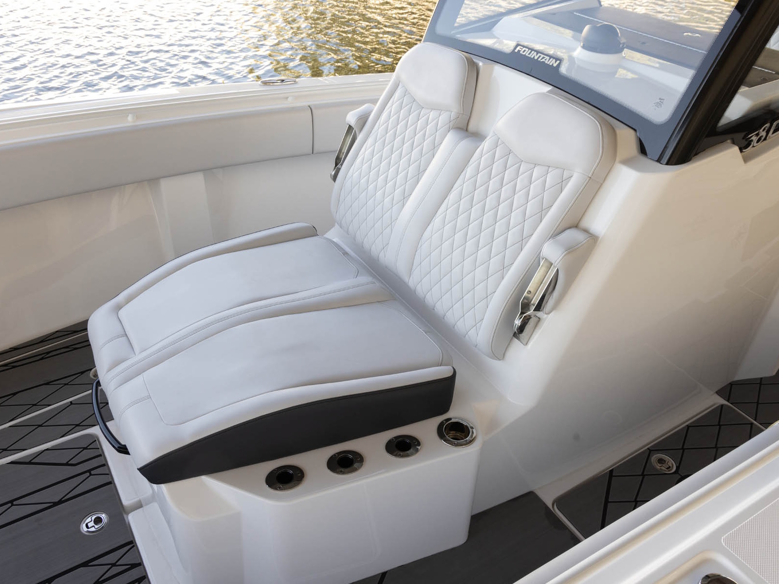 You've never seen a more competition-ready fishing machine under 40-feet than the new Fountain 38 Tournament Edition. Period. The breakthrough 38TE mixes Fountain performance with every fishing feature imaginable. Setup so anglers can speed into action when things get fast-and-furious, 52-rod holders are strategically positioned for instant access. Four in-floor fish lockers and a massive 380-quart coffin box cooler ensure there’s no shortage of places to ice the day's catch. Fountain's right-sized tackle center includes storage compartments, a rigging center, a removable cutting board, and 7" Lure trays.