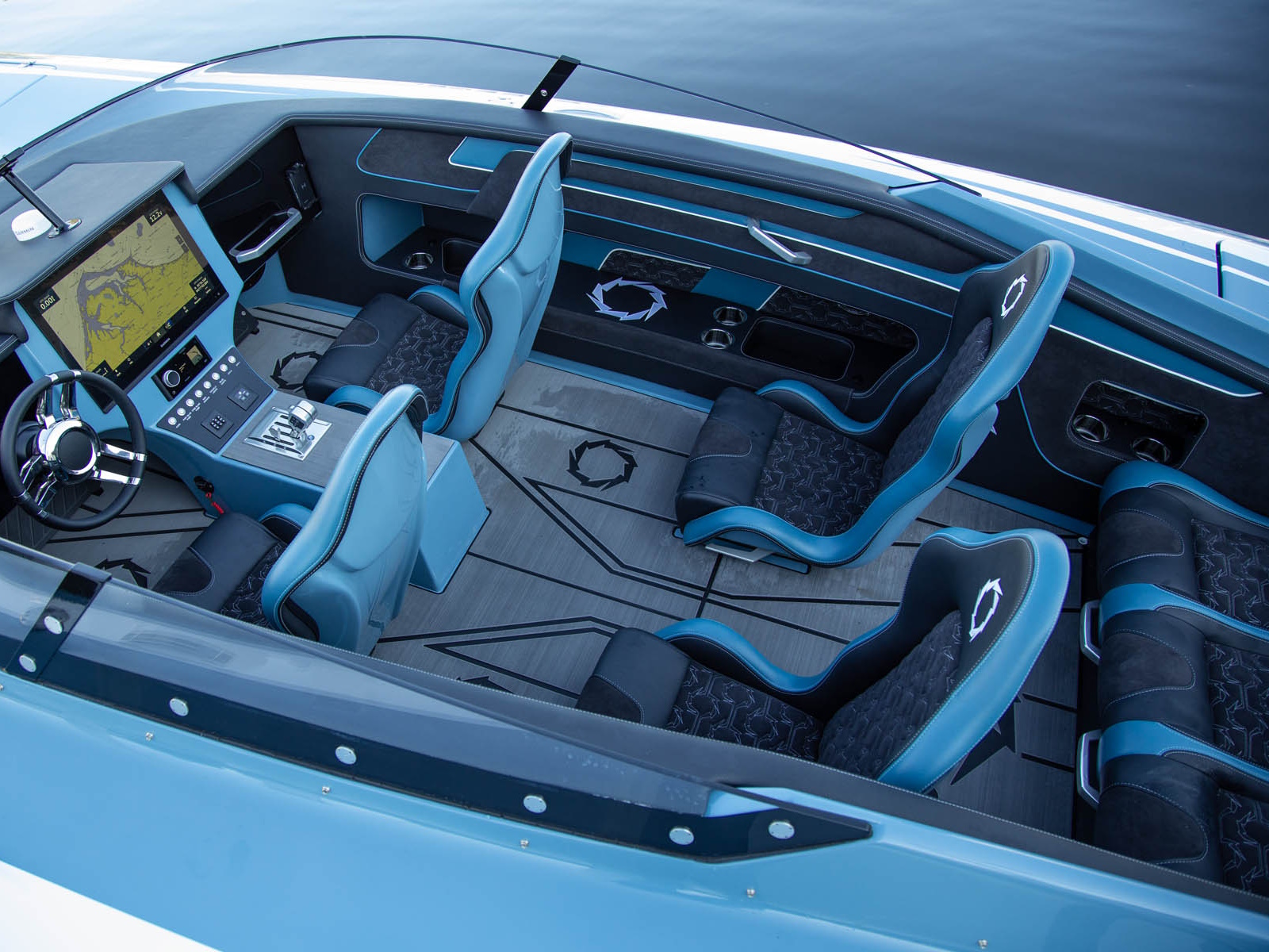 - Seven Passenger Ergonomic Cockpit Seating – Bolstered Bucket Seats (4), Low Profile Bench Aft Seat (3)