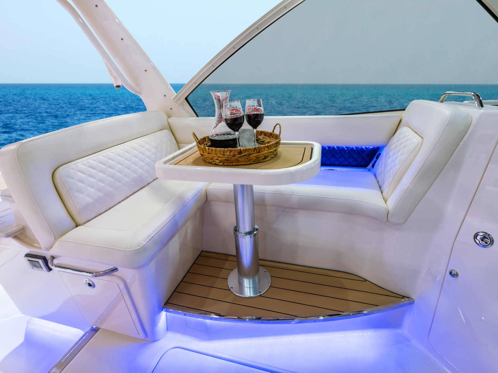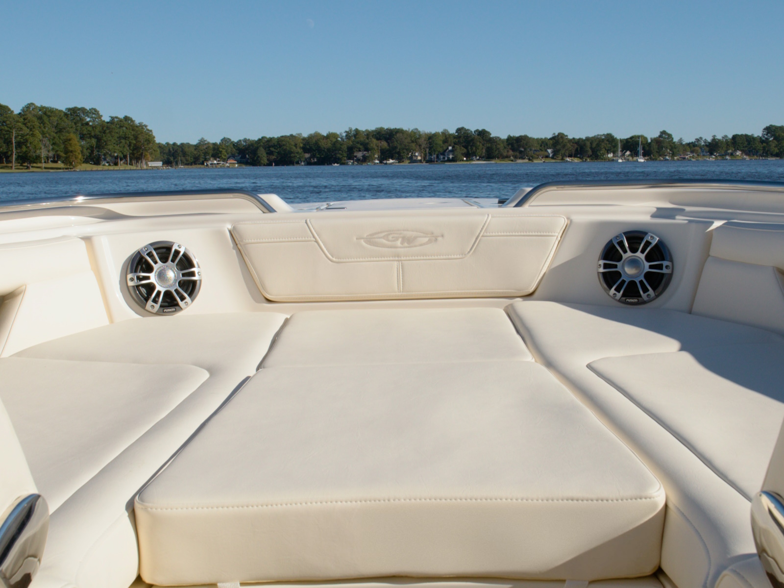 - Stereo - Deluxe stereo system w/waterproof touch screen display, AM/FM tuner, Wi-Fi & Bluetooth® connectivity, helm subwoofer & remote unit; speakers w/LED lights - bow (2), hardtop (4), cabin console (2)