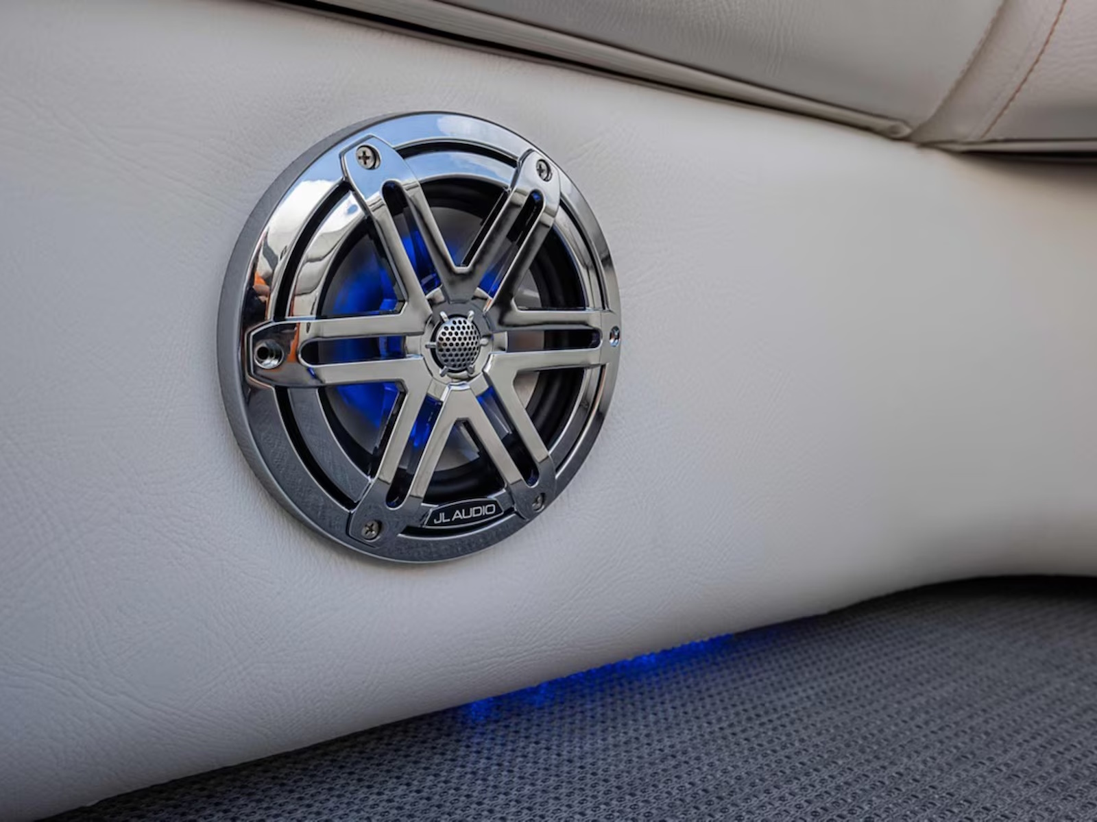 The LX 23 SRS includes sun loungers with electronically actuating back rests accompanied with two dinette tables to accomodate the whole crew in comfort. Room for up to 13 persons and a max horsepower of 300 HP (500 HP Dual Engine).