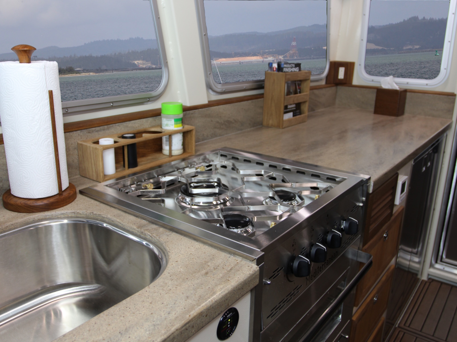 - Propane tank storage on Starboard swim deck (Fiberglass 17 lb. tank)