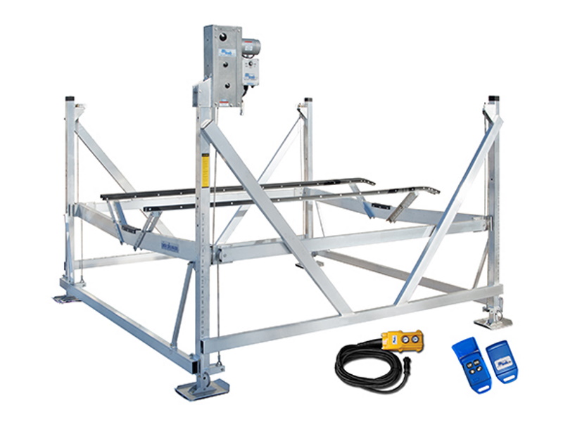 Pier Pleasure’s vertical lift models are built to meet your high standards of quality, value, and performance. All of our vertical lifts are standard with non-corrosive stainless steel bolts, stainless cable, and brass nuts, giving you many years of service while maintaining a clean appearance. Thick aluminum sheaves are used to maximize cable life and to ensure lasting performance under heavy use. Our vertical lifts offer rigid diagonal V-bracing on both sides, giving uncompromised strength on demand when your boat is raised to maximum height. Our V-braced design also allows for non-restricted access to your boat from either side of the lift making it ideal for slip installations.