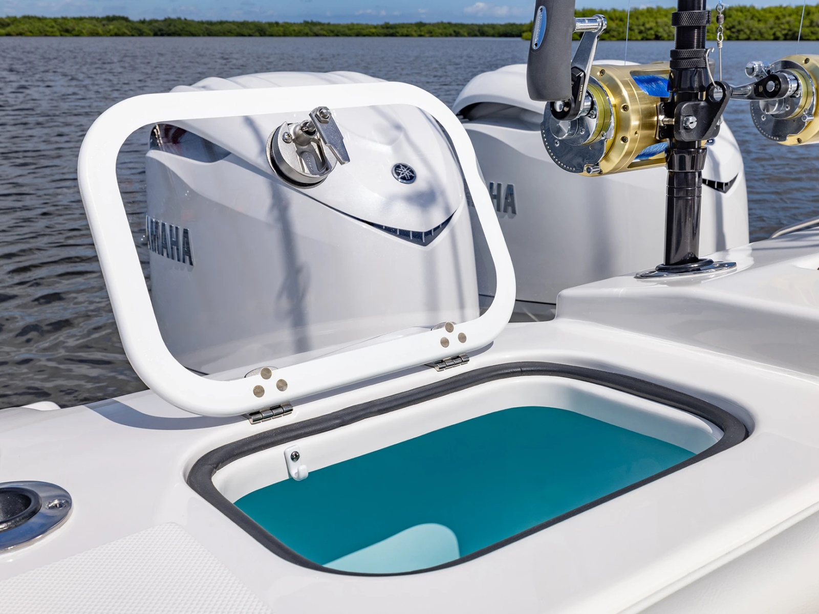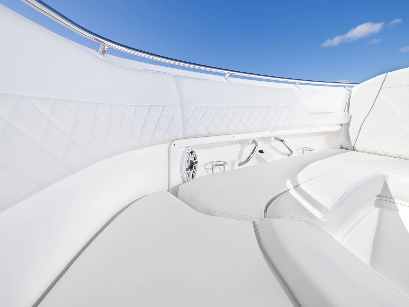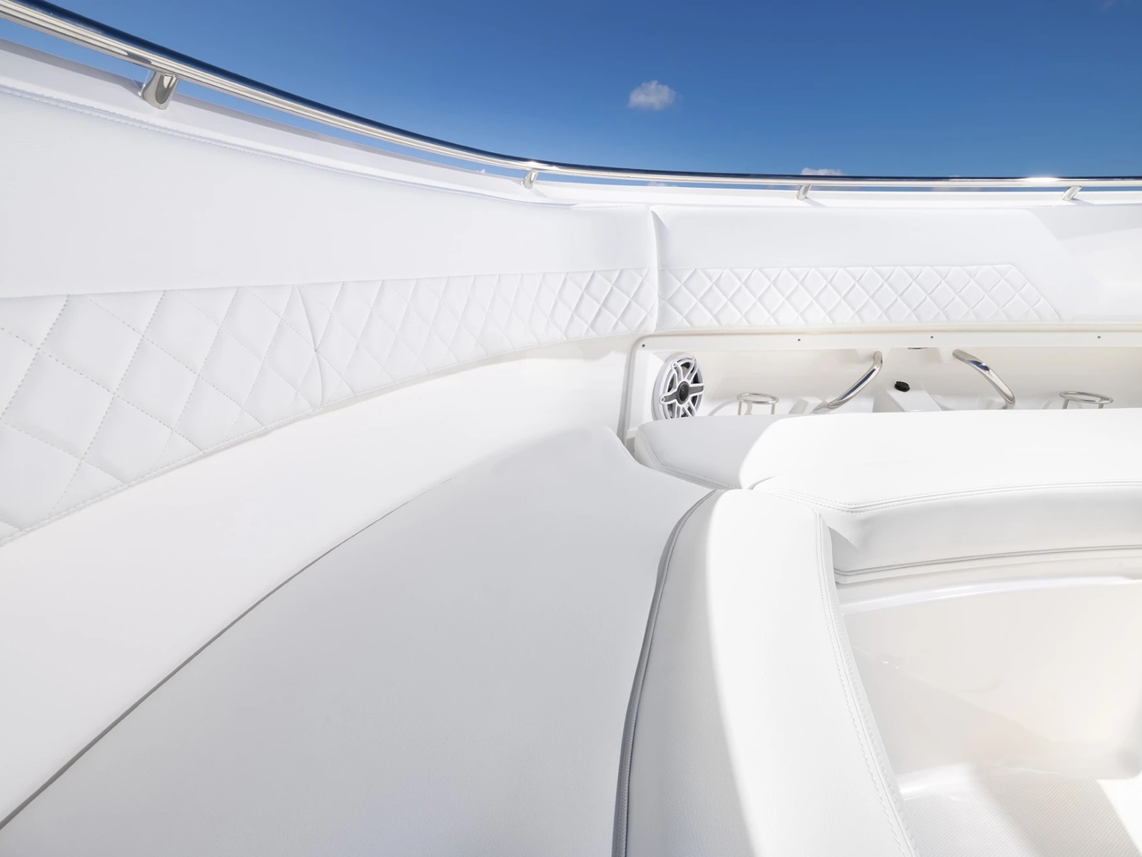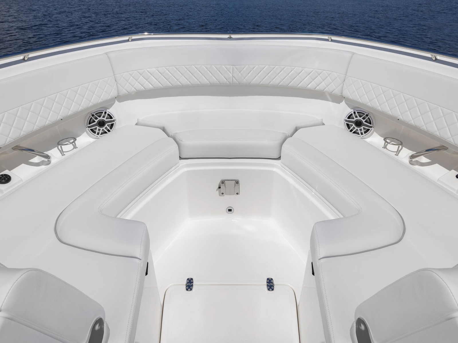 - Port and Starboard Forward Coaming Boxes with Four (4) Drink Holder, Storage Keeper, 12V and USB (A & C) Outlets, Mid-Level Lighting, Stereo Remote and (2) Speakers