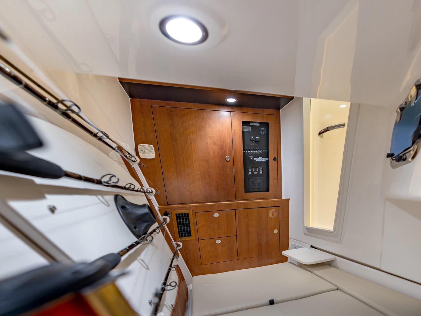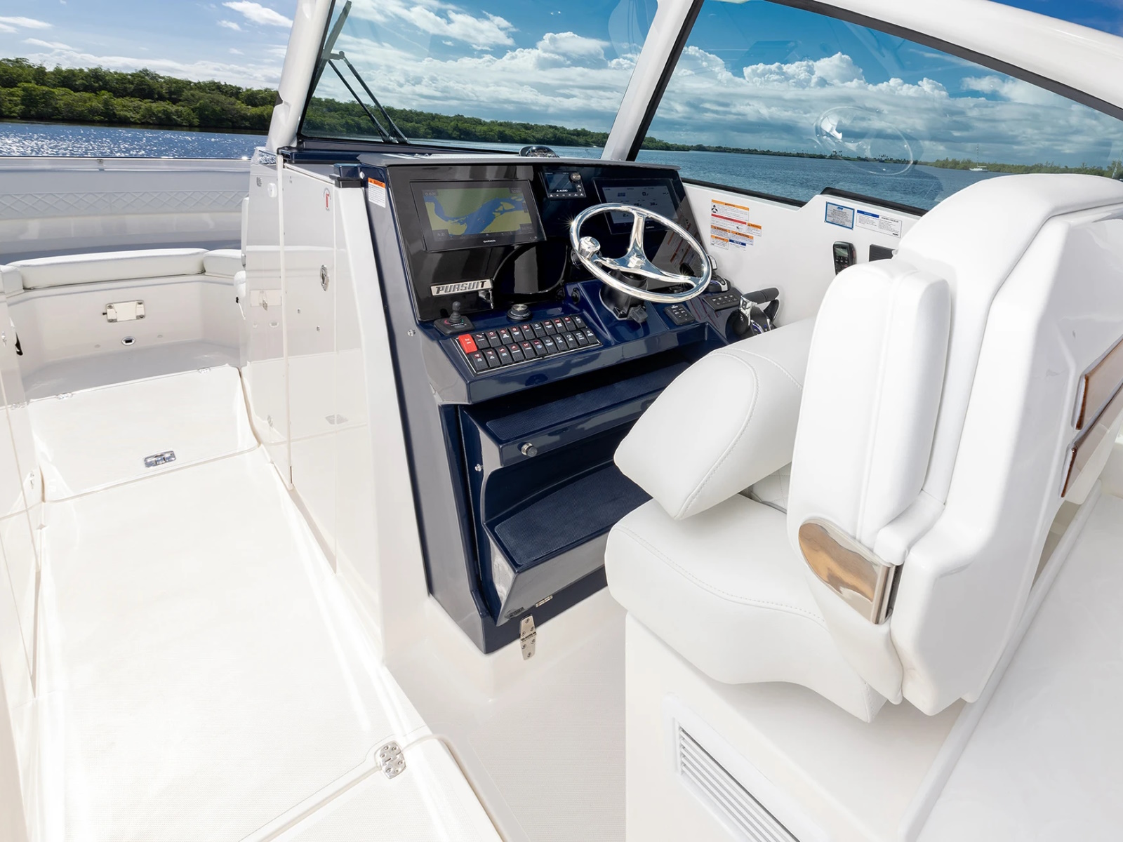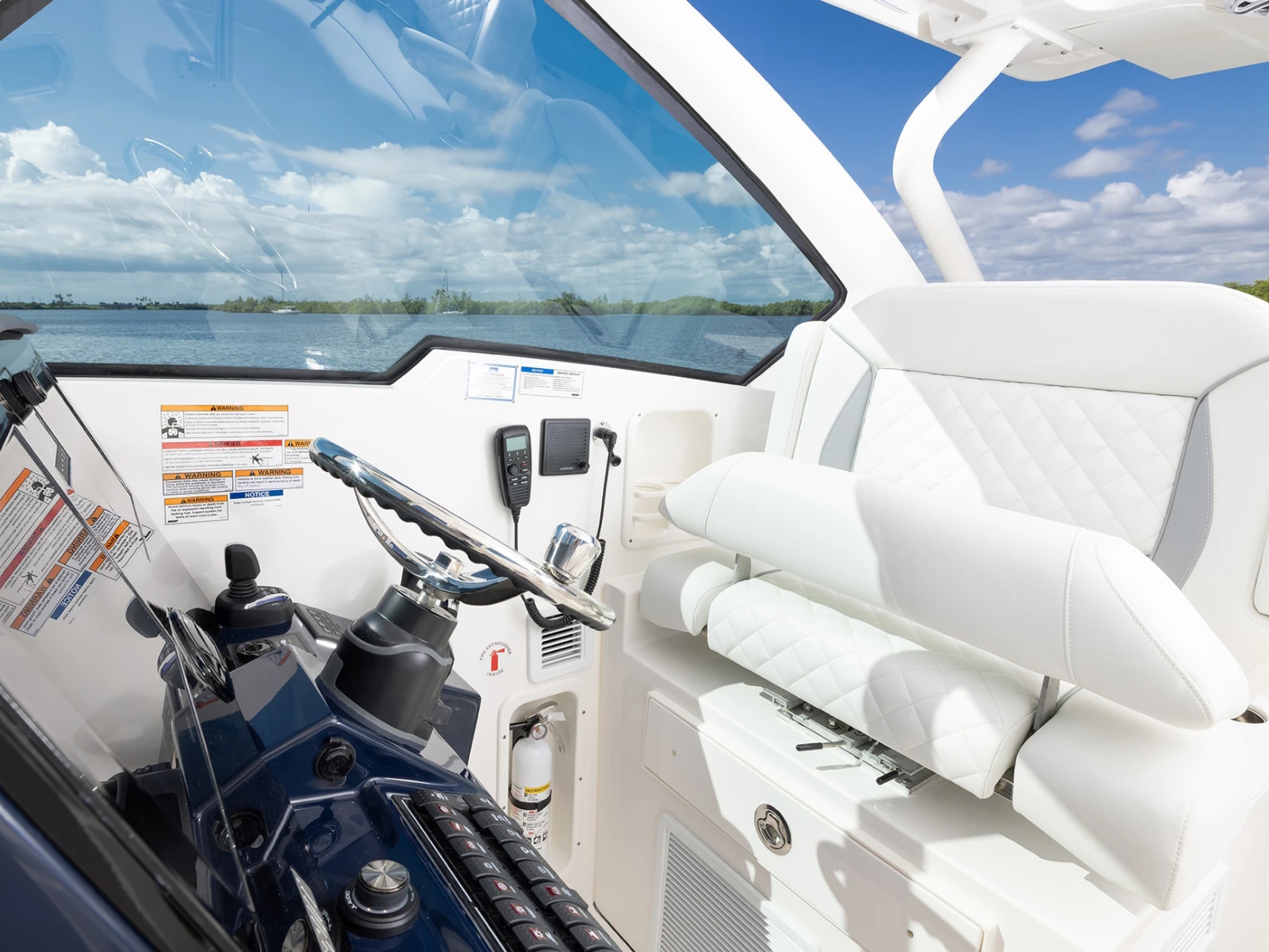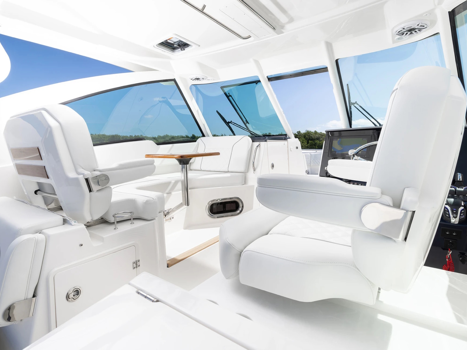 - Port and Starboard Forward Coaming Boxes with Four (4) Drink Holder, Storage Keeper, 12V and USB (A & C) Outlets, Mid-Level Lighting, Stereo Remote and (2) Speakers