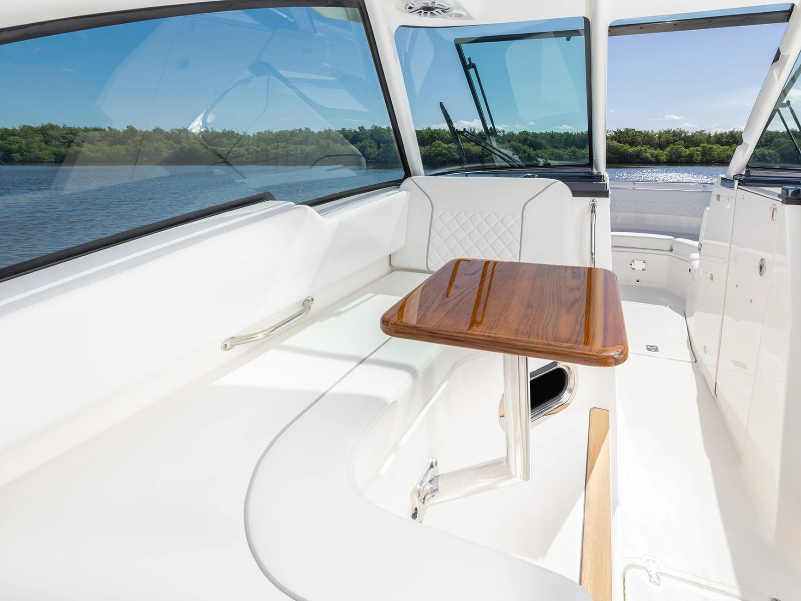 - Two (2) 316L Stainless Steel Drink Holders on Bridge Lounge, Two (2) Acrylic Drink Holders at Helm, Two (2) 316L Stainless Steel in Gunwale, One (1) Acrylic Drink Holder at Aft Facing Cockpit Seat