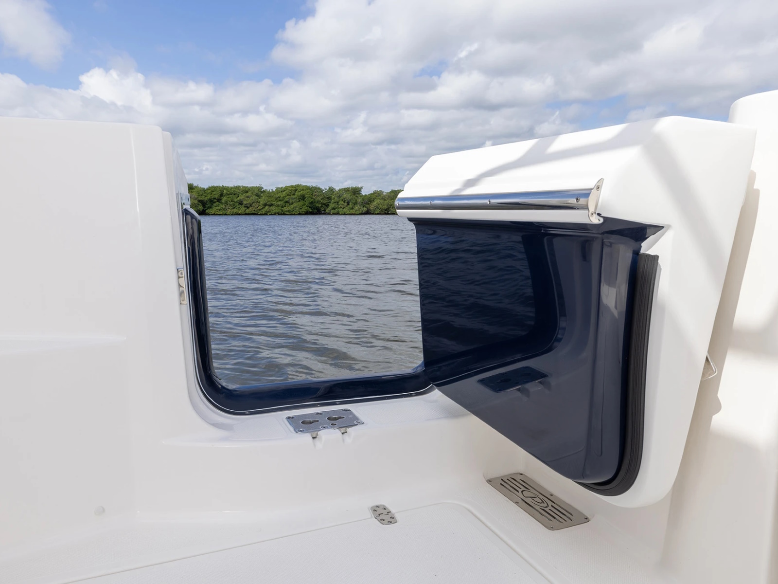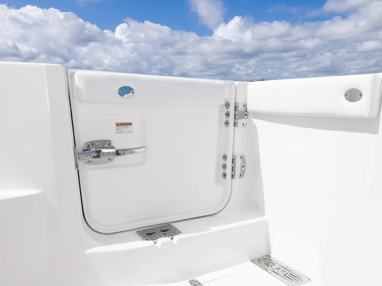 - Molded Transom Walkthrough with Hinged Transom Door, 316L Stainless Steel Latch and Magnetic Catch