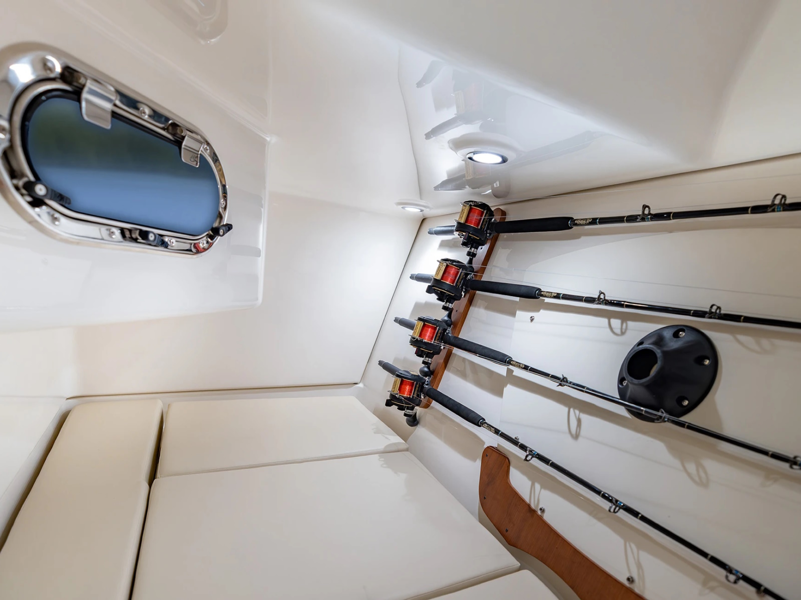 - Vertical Rod Holders, (5) Stainless Steel. In Transom