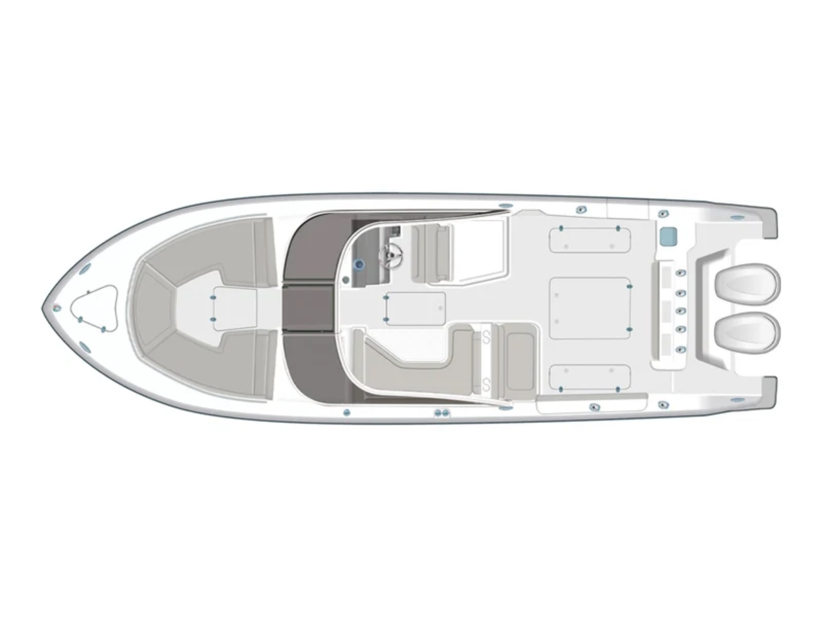 Hull Color Carbon, Neptune Gray, Sea Mist, Flag Blue, Arctic Blue, Fresh WhiteFull Bottom Gelcoat to Keel of Boat (Excludes: Flag Blue)Helm Color