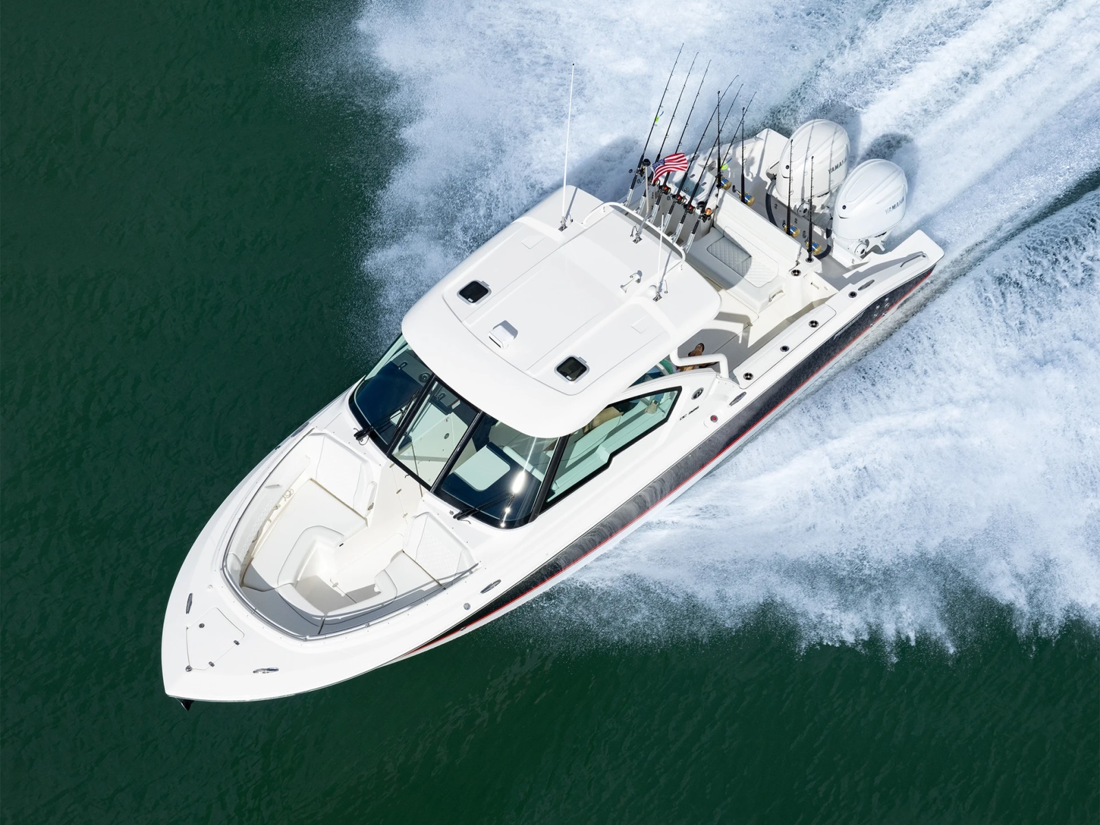 12V, 1.7 ft3 Cooler with Chill Plate (Under Aft Facing Seat)Bridgedeck Teak Table with StorageSki Tow, Transom Mount, RemovablePremium Stereo Upgrade: Amp Upgraded to Custom-Tuned DSP, All Speakers Upgraded to Sport Grilles with Full Spectrum Backlighting (controlled through MFDs), and SiriusXM® Receiver with Antenna (Incudes 3 Month Subscription).