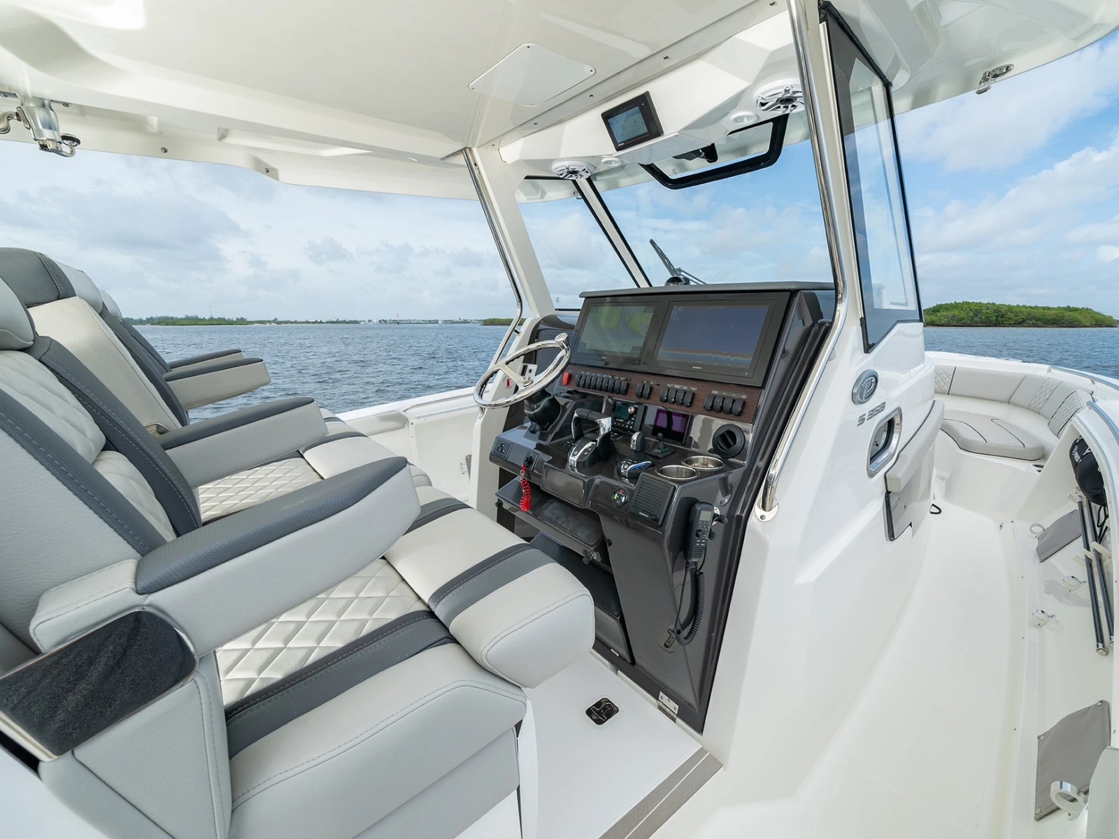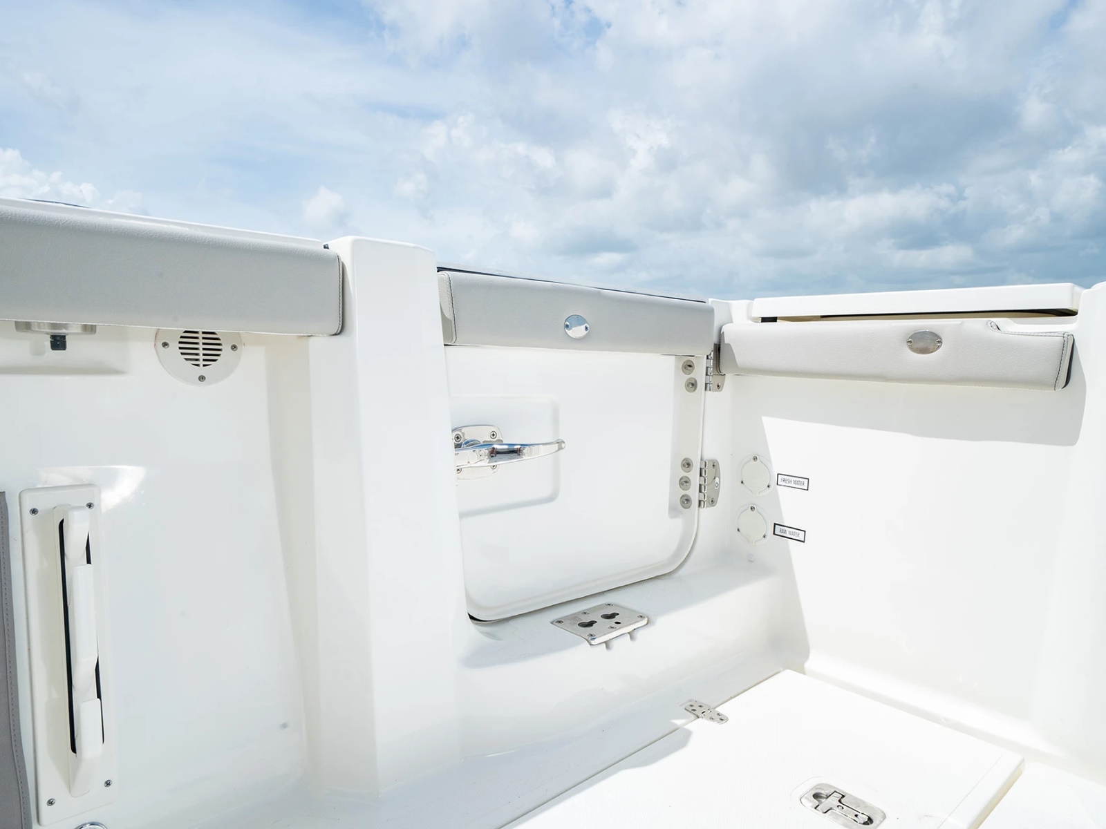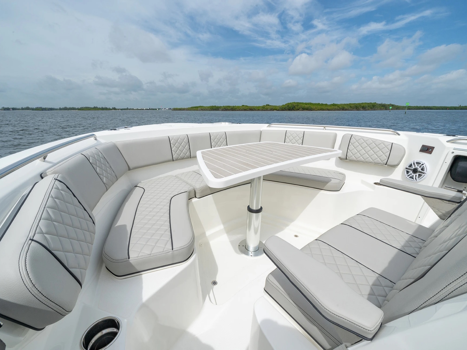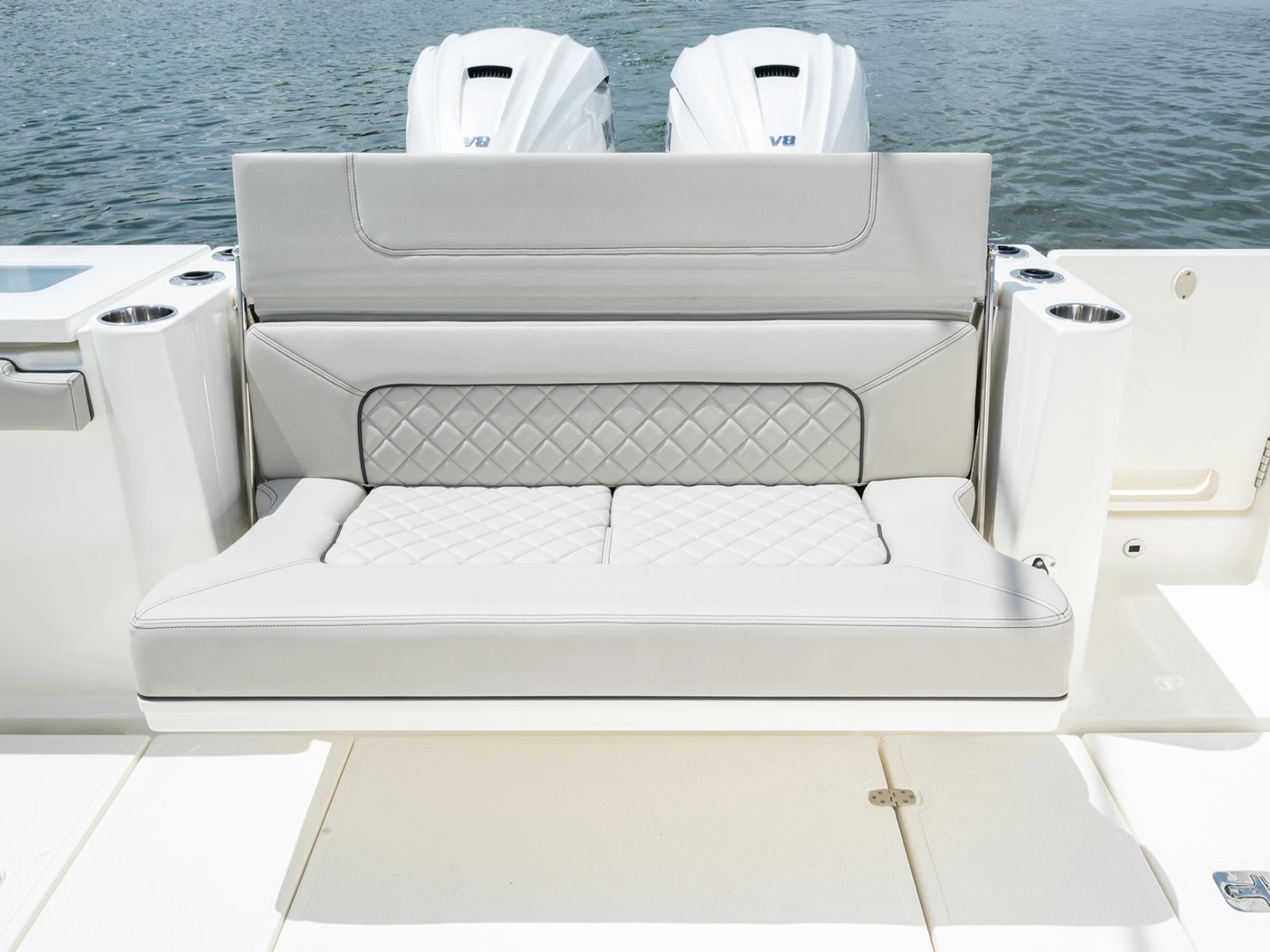 Ergonomically designed helm seating and dash for the ultimate in comfort and control. And the fact that it’s the only center console in the 34' to 35' market to have an enclosed head. Whether you are socializing on deck, driving to your secret fishing spot or taking a moment to yourself, you’ll appreciate the thoughtful craftsmanship instilled in every inch. Plus, forward-facing lounge seats in the bow, side coaming storage and built-in rod holders add to the ways you and your family can enjoy this boat.