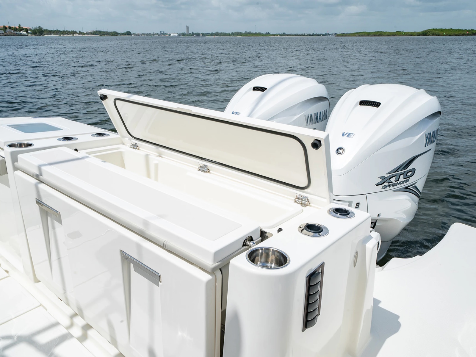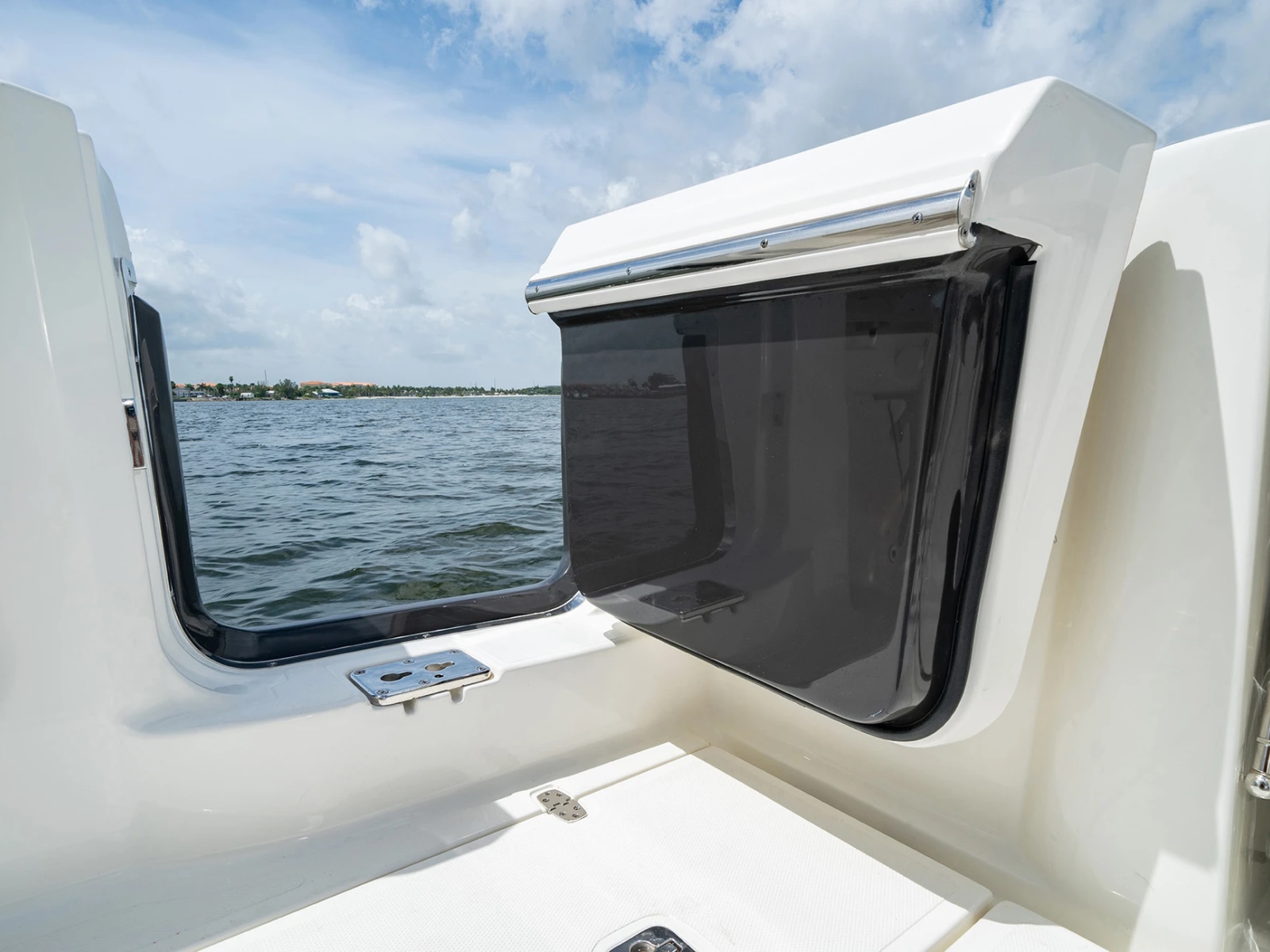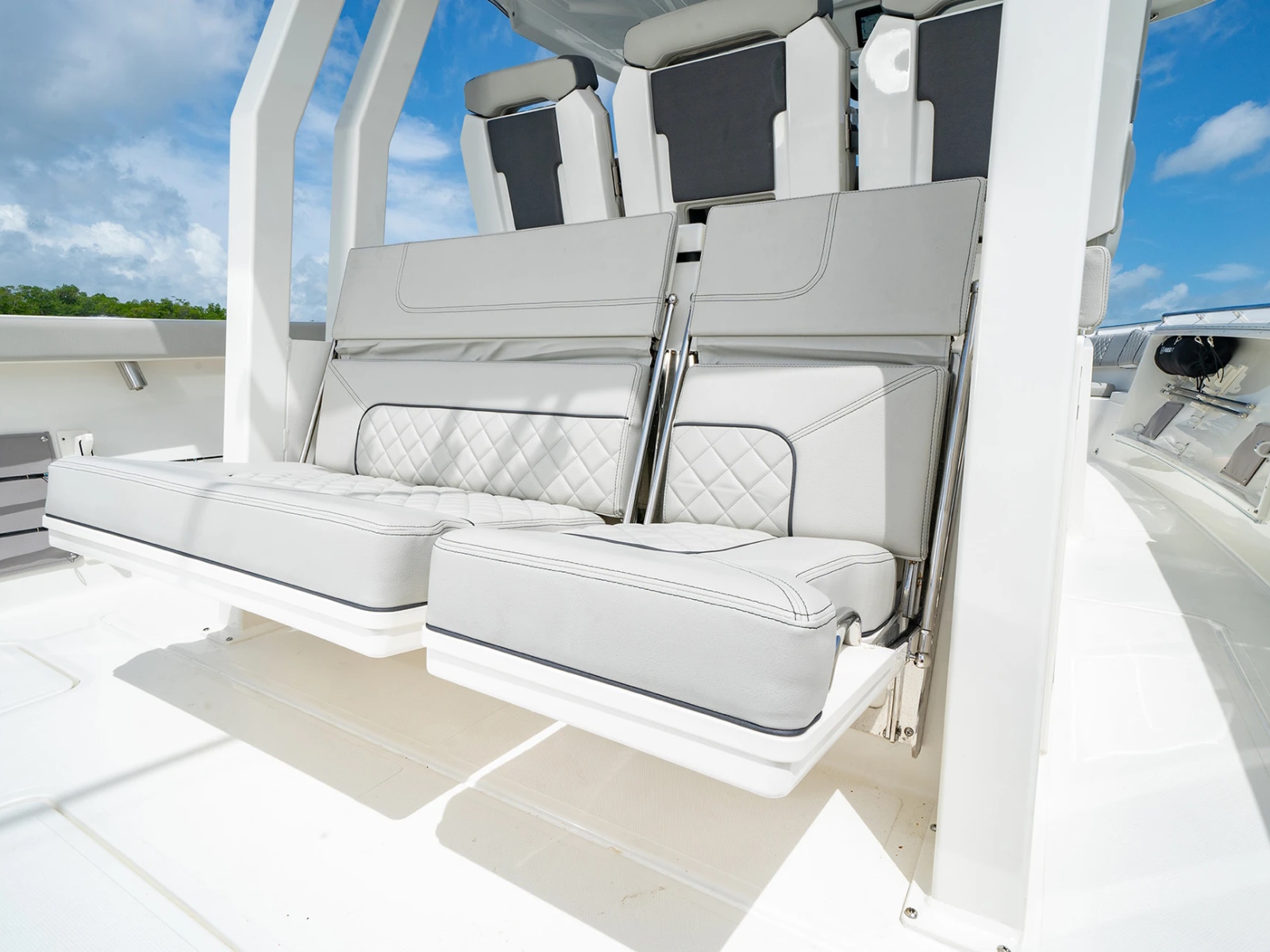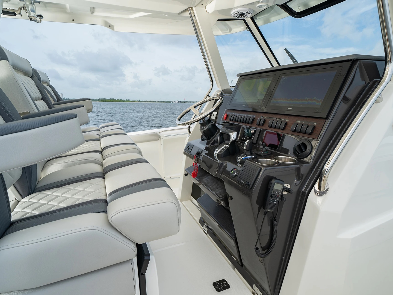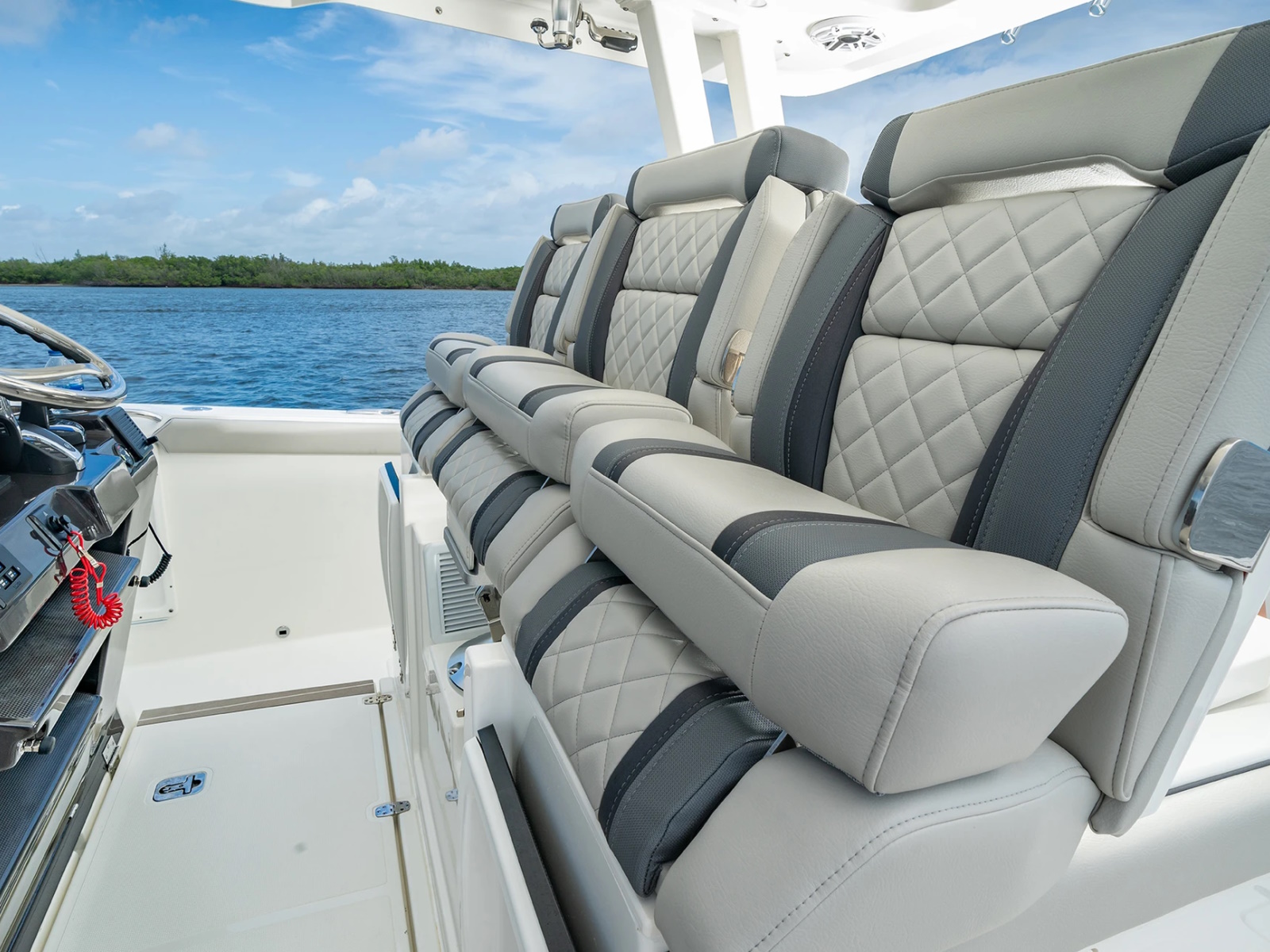Ergonomically designed helm seating and dash for the ultimate in comfort and control. And the fact that it’s the only center console in the 34' to 35' market to have an enclosed head. Whether you are socializing on deck, driving to your secret fishing spot or taking a moment to yourself, you’ll appreciate the thoughtful craftsmanship instilled in every inch. Plus, forward-facing lounge seats in the bow, side coaming storage and built-in rod holders add to the ways you and your family can enjoy this boat.