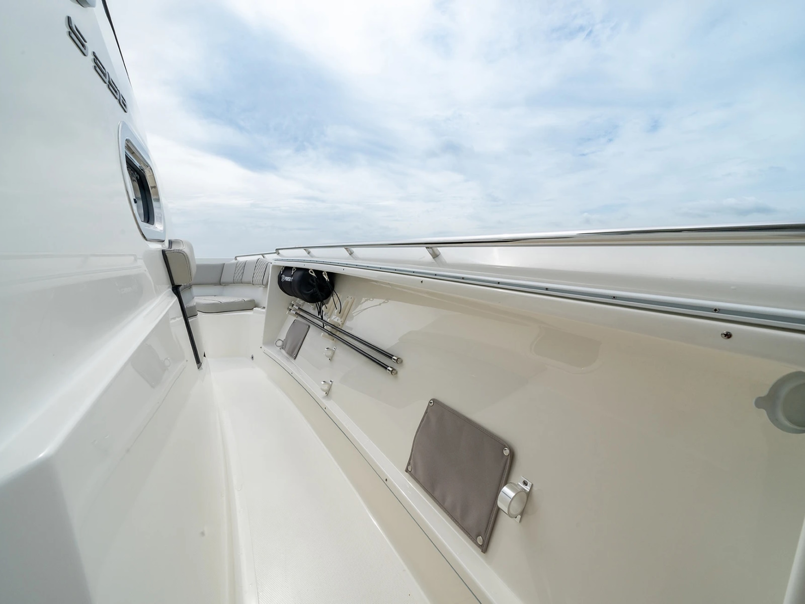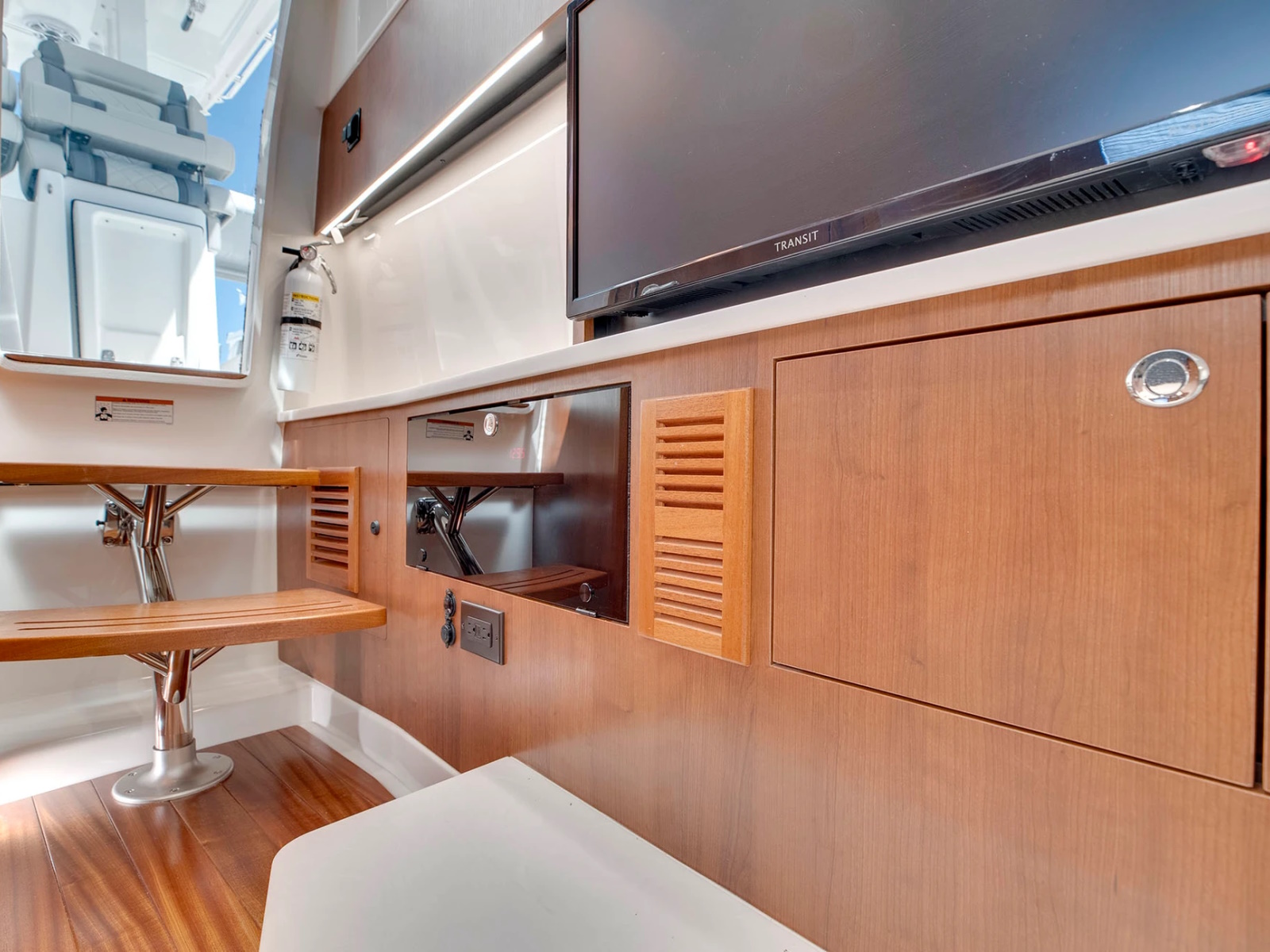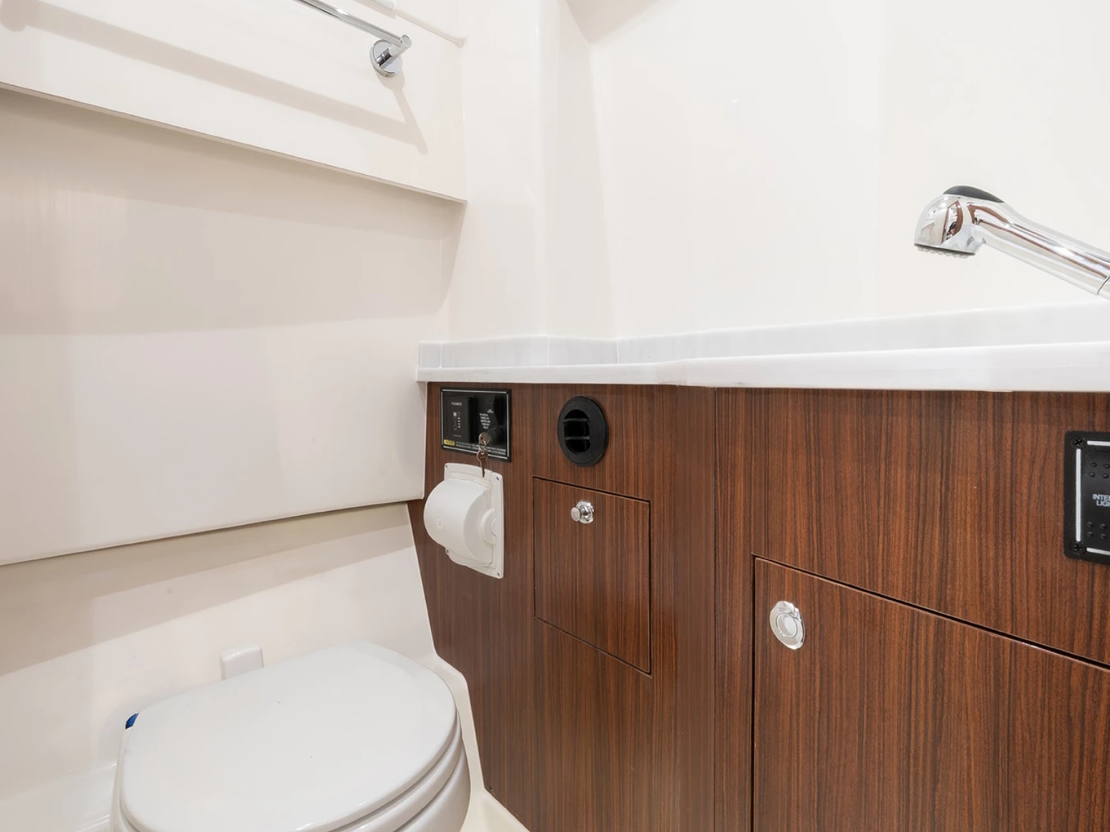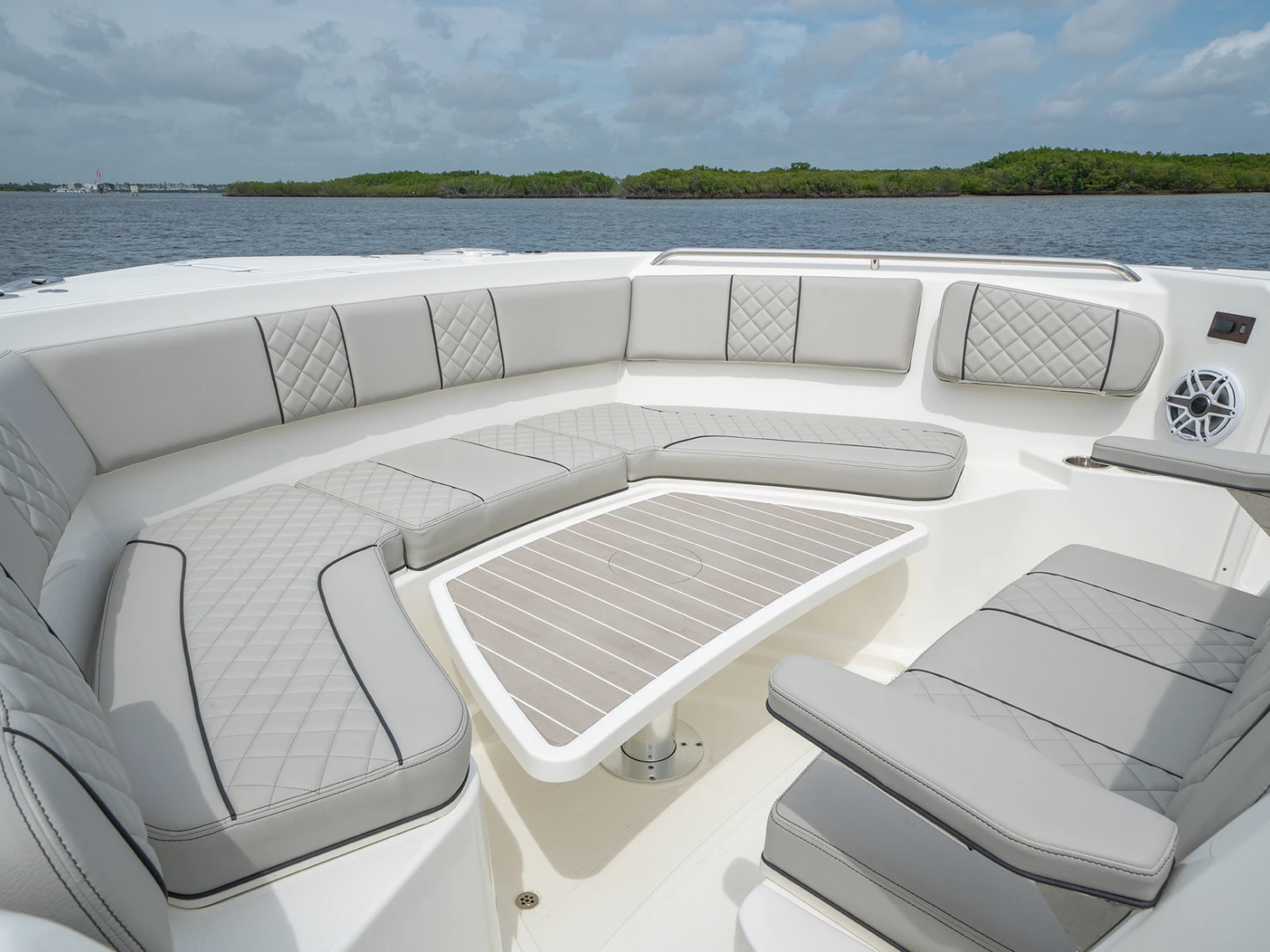 Ergonomically designed helm seating and dash for the ultimate in comfort and control. And the fact that it’s the only center console in the 34' to 35' market to have an enclosed head. Whether you are socializing on deck, driving to your secret fishing spot or taking a moment to yourself, you’ll appreciate the thoughtful craftsmanship instilled in every inch. Plus, forward-facing lounge seats in the bow, side coaming storage and built-in rod holders add to the ways you and your family can enjoy this boat.