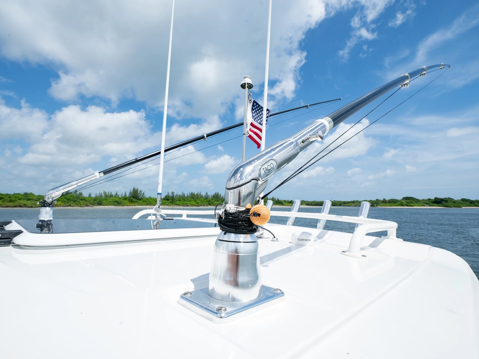Hardtop Mounted Rod Holders (6)Outriggers – Gemlux Deluxe Stainless Steel Bases with 18' Collapsible Carbon Fiber Poles, Gemlux Premium Double Rigging Kits with Gemlox Halyard Locks and Line Caddys (also included are two Taco deck-mounted line tensioner/cam locks)Rod Holders - Transom Mounted (2)