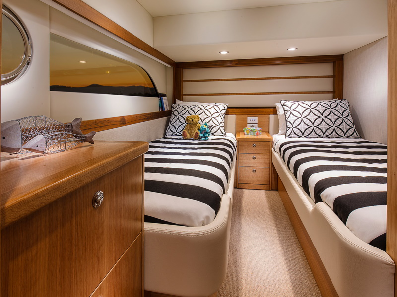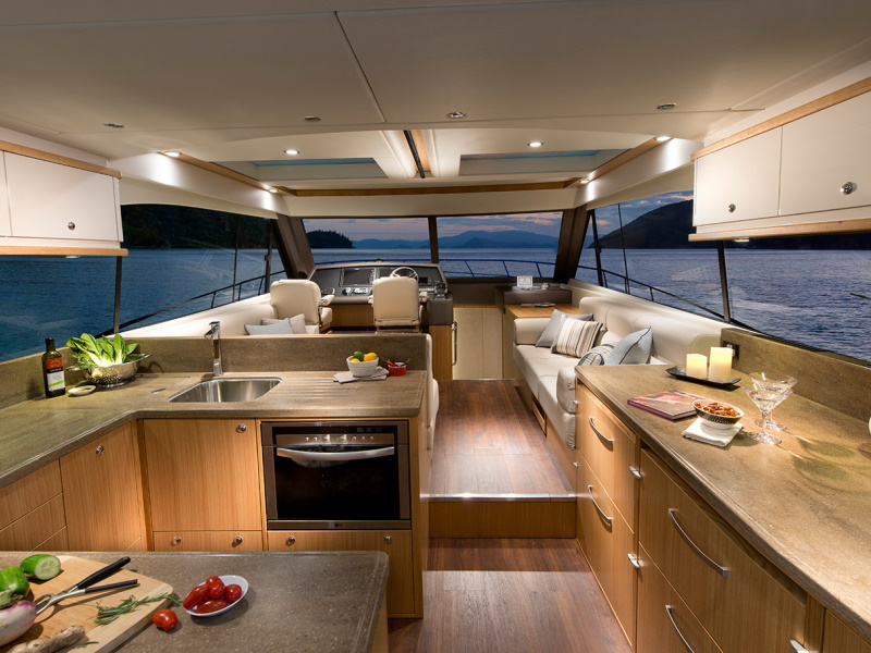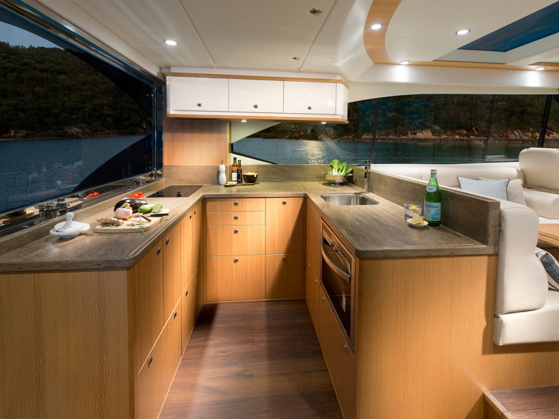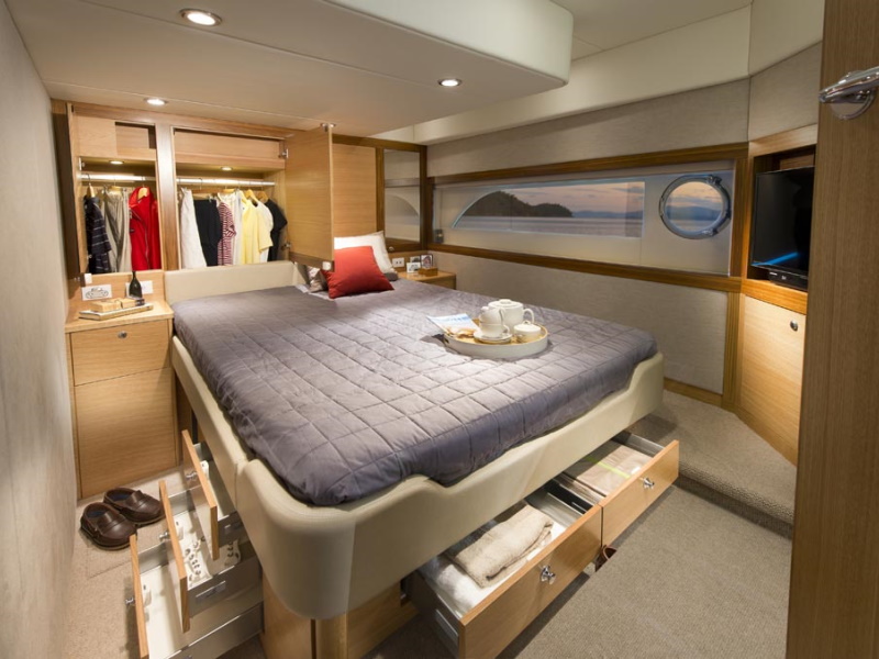 Riviera’s steadfast commitment to going “first-class” in everything it does extends to the flexible three-stateroom/two-bathroom accommodation deck of the 525 SUV – again there’s absolutely no compromise in terms of quality or on-board liveability and luxury.