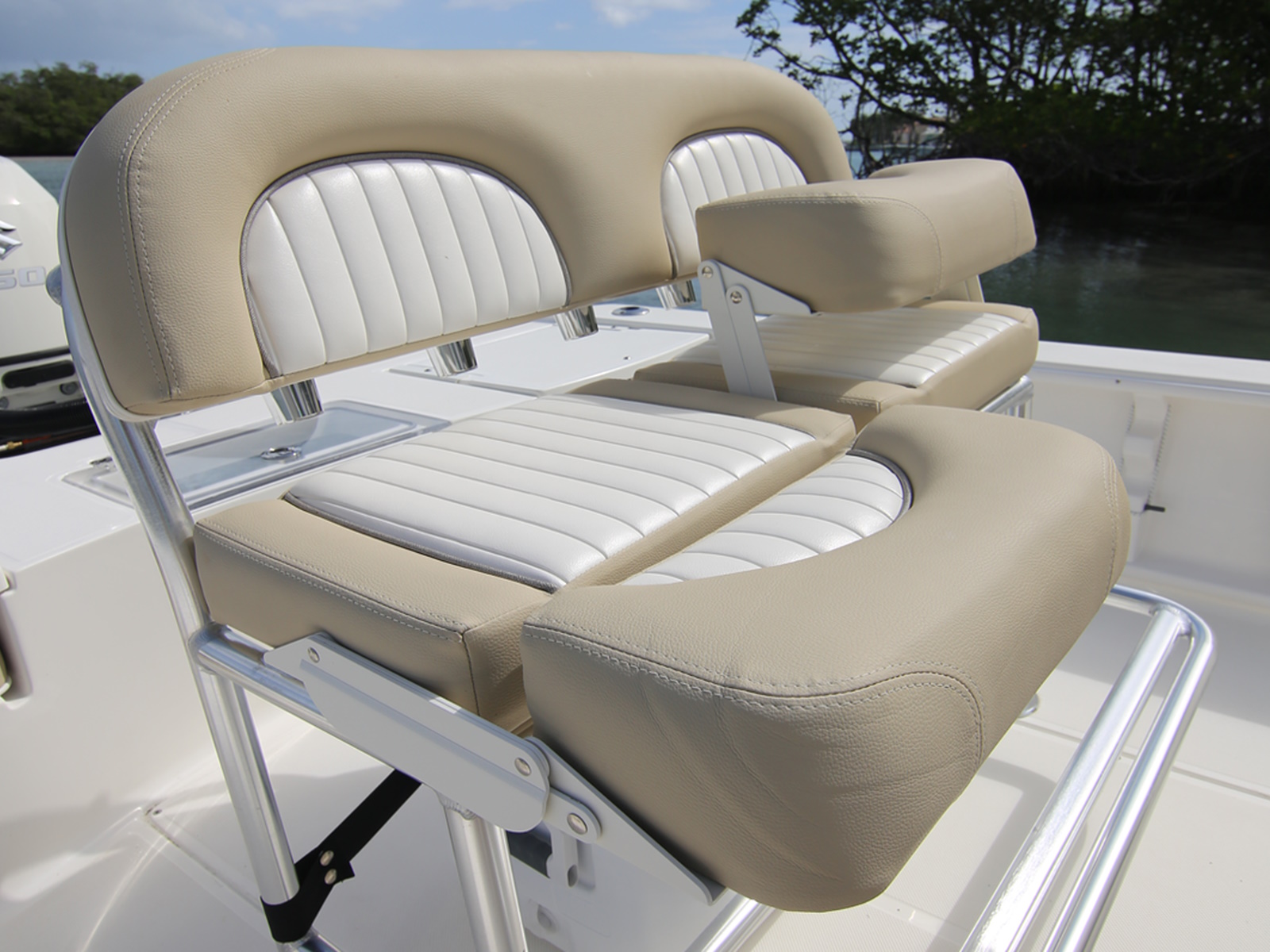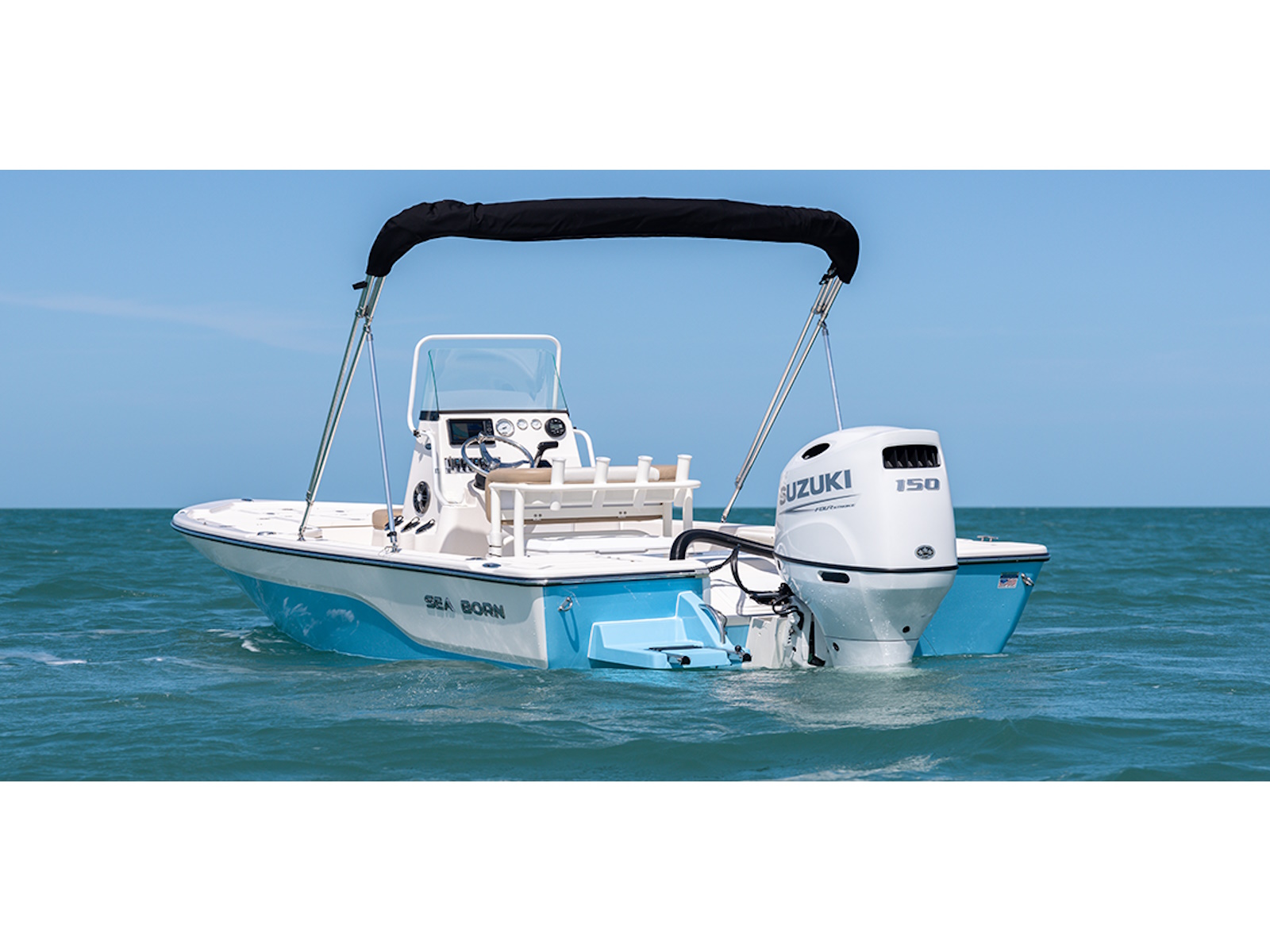 The Sea Born FX21 Bay is perfect for the price conscious buyer looking for fishing friendly features as well as a family cruiser in an affordable package. Our 21-foot bay boat offers exceptional performance and fuel economy with over 39+ standard features including two aft, full sized, folding jump seats for improved passenger safety while a cruise.