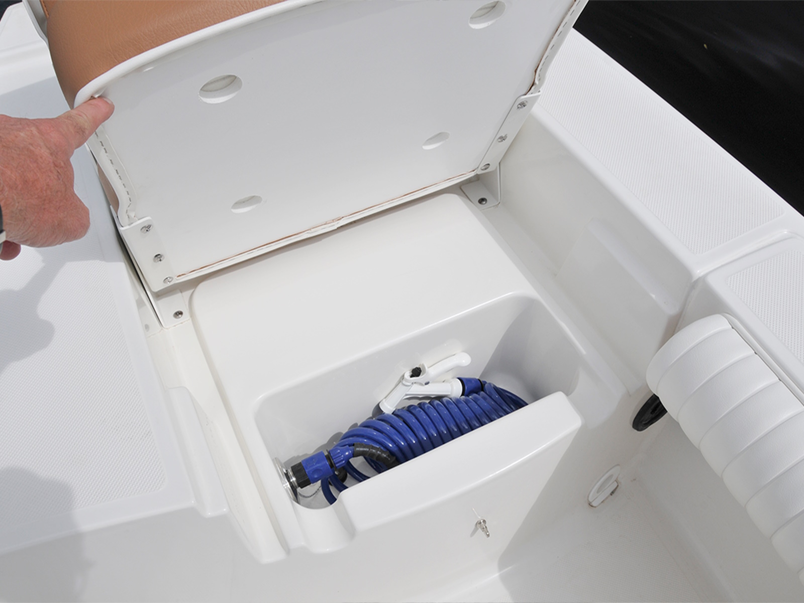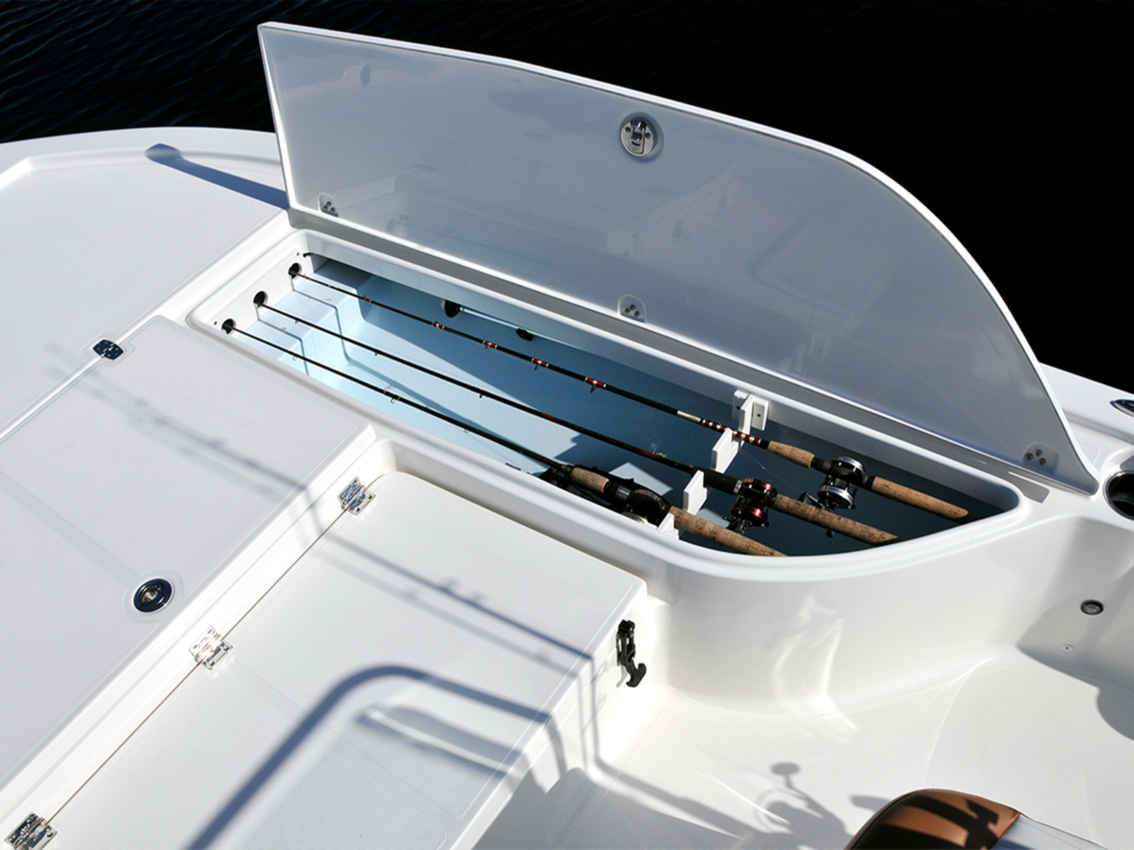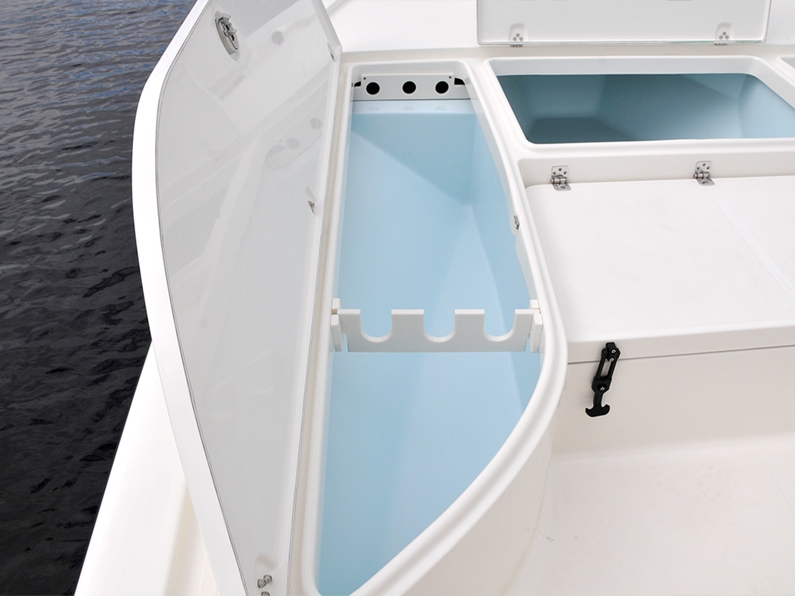 Affordable, roomy, and stylish, the FX22 Bay is a truly unique bay boat as it is offered with two distinct deck plans each designed to maximize your boating experience. Our standard layout provides a more family-friendly appeal as it is equipped with two, full-sized, rear-folding jump seats. For the hardcore angler, our all-new tournament deck replaces those rear seats with two high-capacity, oxygen replenishing, recirculating wells.