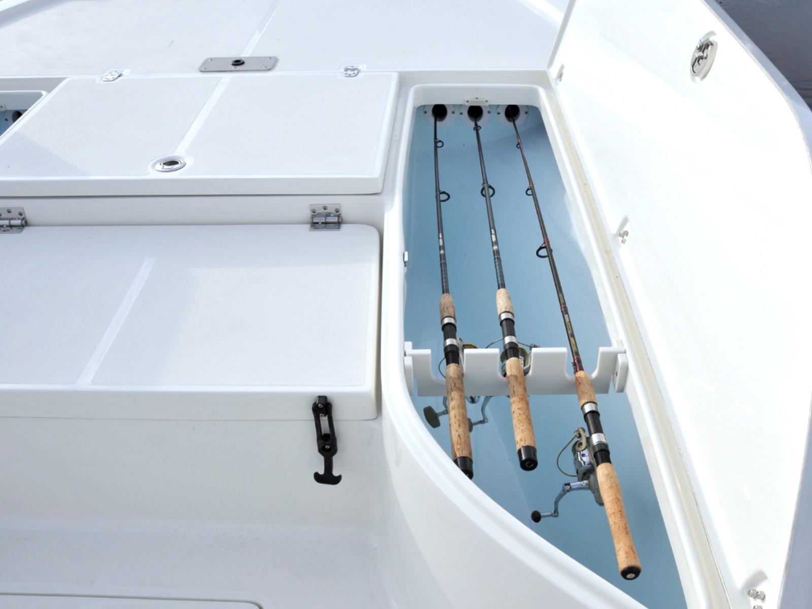 The mid-sized model in our FX series of top-quality bay boats, the 24′ fills the need of those seeking a bit more boat than a 22′ or 19-footer. From bow to stern, owners enjoy dozens of the most-requested features found in the very best bay boats including a large-forward casting deck, rear-folding jumps seats, and performance-improving, double-stepped hull.