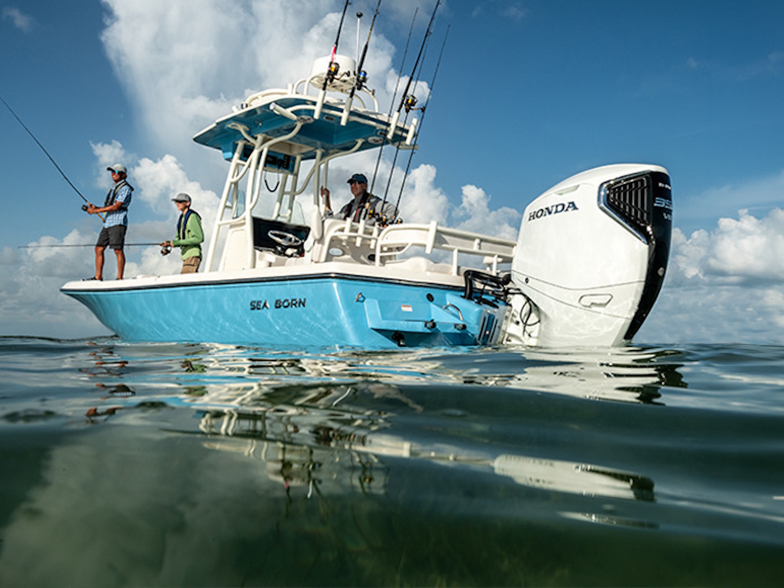 The flagship of the Sea Born bay boat lineup, the FX25 turns heads as one of our most sought-after models for the serious angler. Built on a stable 105″ beam with a single-step hull for improving performance, the FX25’s sportfish-style transom and large forward casting deck make it a true hybrid and dual threat for both inshore or offshore.