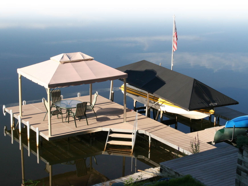 Drop in decking panels provide for easy installation and removal and complete the clean no seam traditional look of this extraordinary dock.