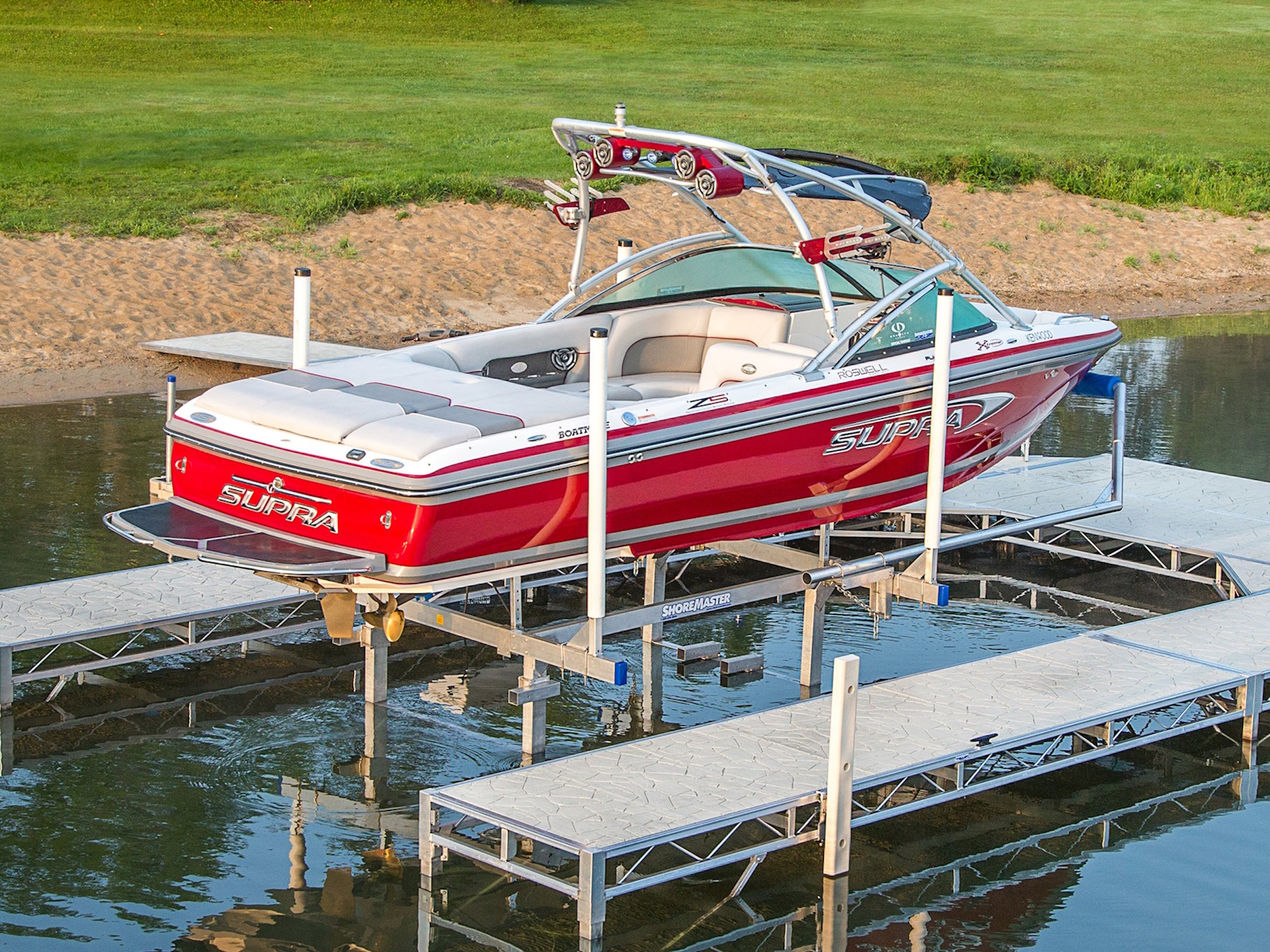 ShoreMaster Hydraulic Boat Lifts offer superior reliability, premium performance, and ultimate convenience. Precision welded construction provides superior durability over bolt together lifts, while the traditional hydraulic design means minimal maintenance and hassle-free operation. Premium components and time-tested designs give owners complete peace of mind that their watercraft is protected from the elements. Plus, remote control operation is standard with all ShoreMaster Hydraulic Lifts for easy, convenient, hassle-free lift operation. Combined with a ShoreMaster Canopy System and Boat Lift Accessories the Hydraulic Boat Lift can accommodate nearly any watercraft style.
