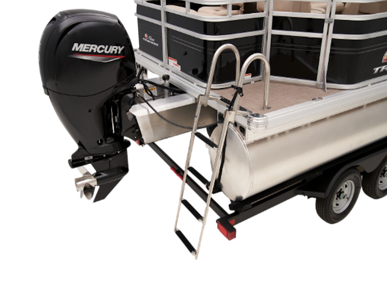 The SPORTFISH™ 22 DLX comes standard with a 115hp Mercury® ELPT FourStroke outboard motor and has a recommended maximum 150hp rating.