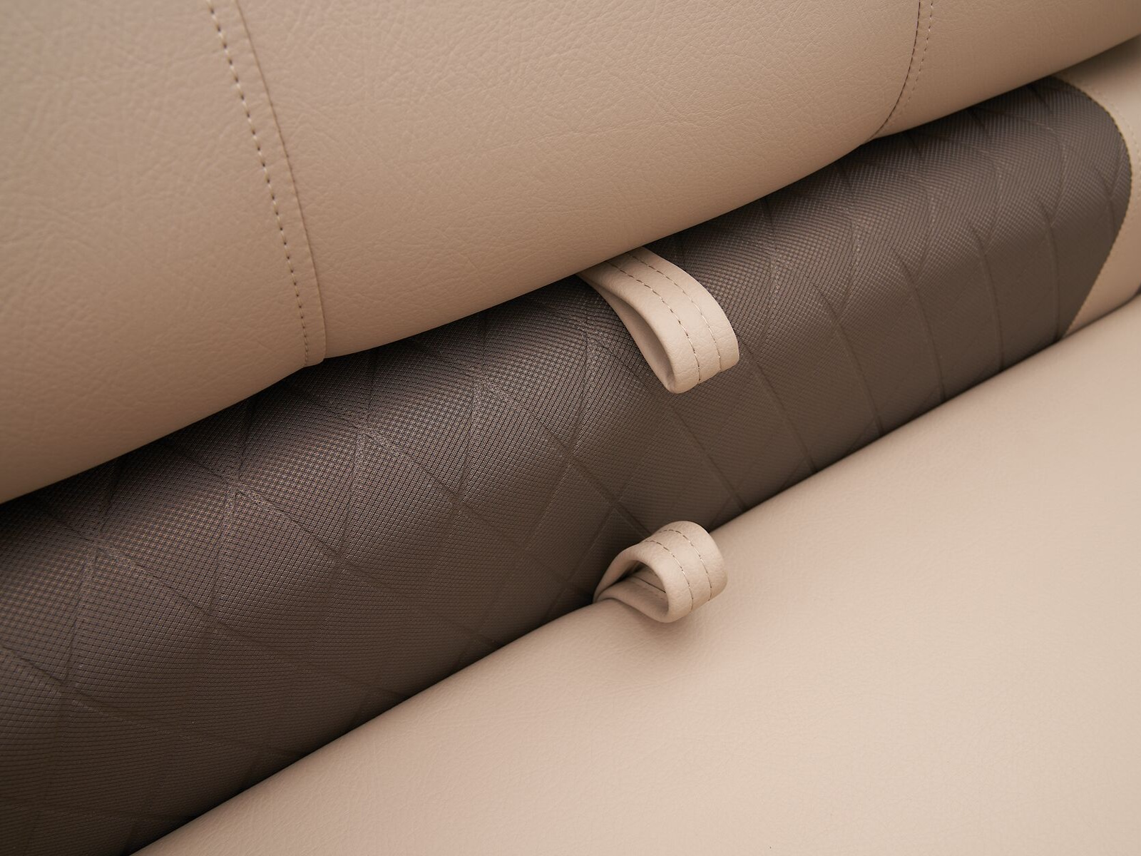 Marine-grade, UV-resistant, top-coated upholstery w/26-oz. (.74 kg) base material & multiple densities of foam