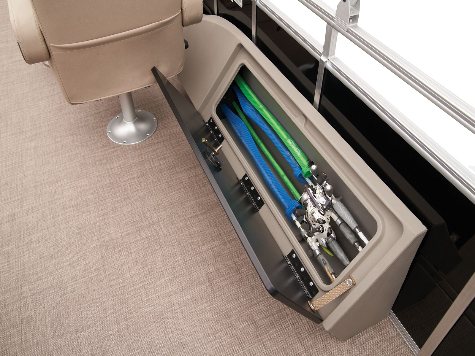 - Aft starboard lockable rod box for 6 rods to 7' 6" (2.29 m) w/lid, rod tube holders & organizer