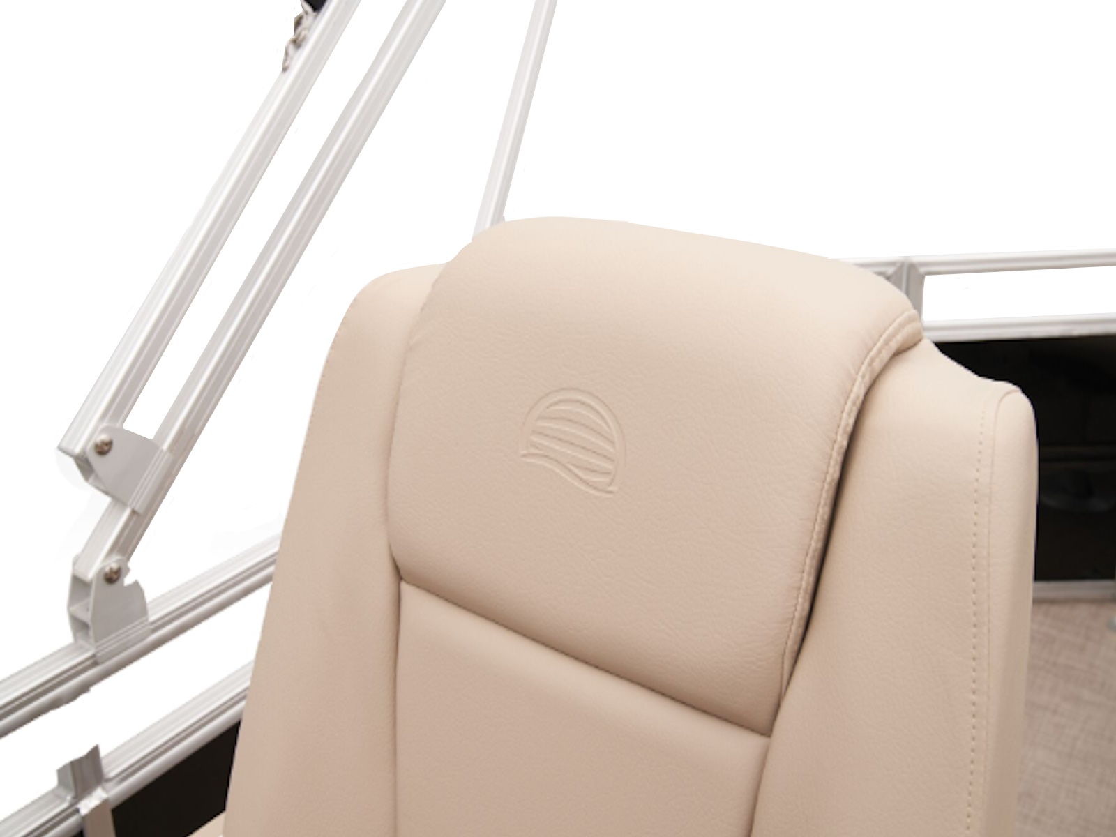 - Reclining, high-back swiveling helm bucket seat w/self-leveling armrests