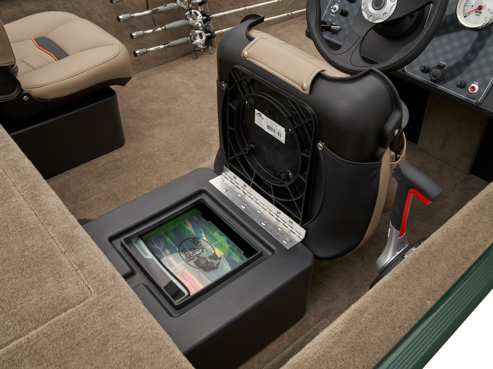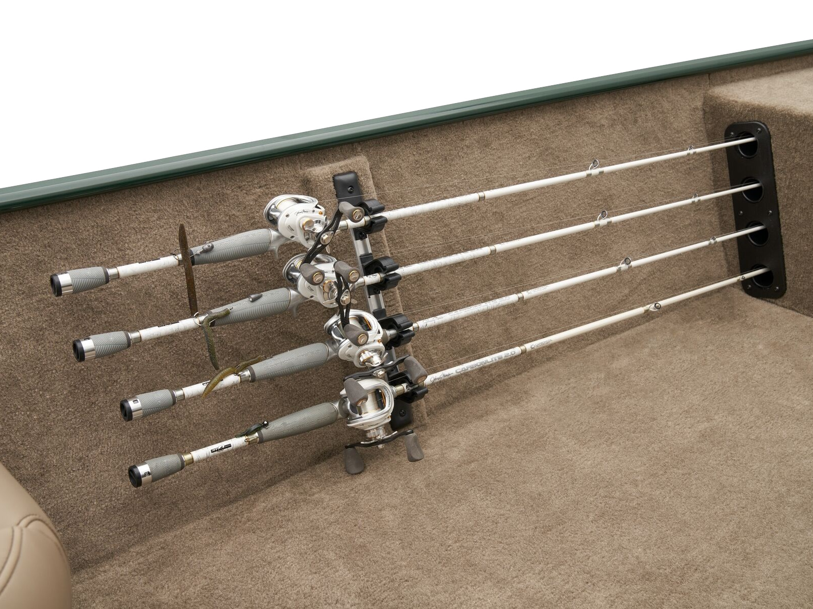 • Port side rod holders w/organizer for 4 rods to 7' (2.13 m)