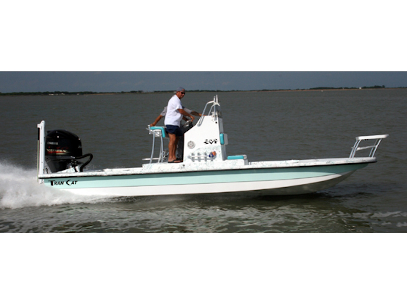 The SVT Tran Cat from Tran Sport Boats is an entirely new boating experience. The same hull shape of the popular Baby Cat. The SVT, which stands for split vee tunnel, has a tight turning radius that you will not find in any other shallow water boat. The twin semi vee hull gives it a soft dry ride across the open bay while the tunnel provides enough water to run skinny.