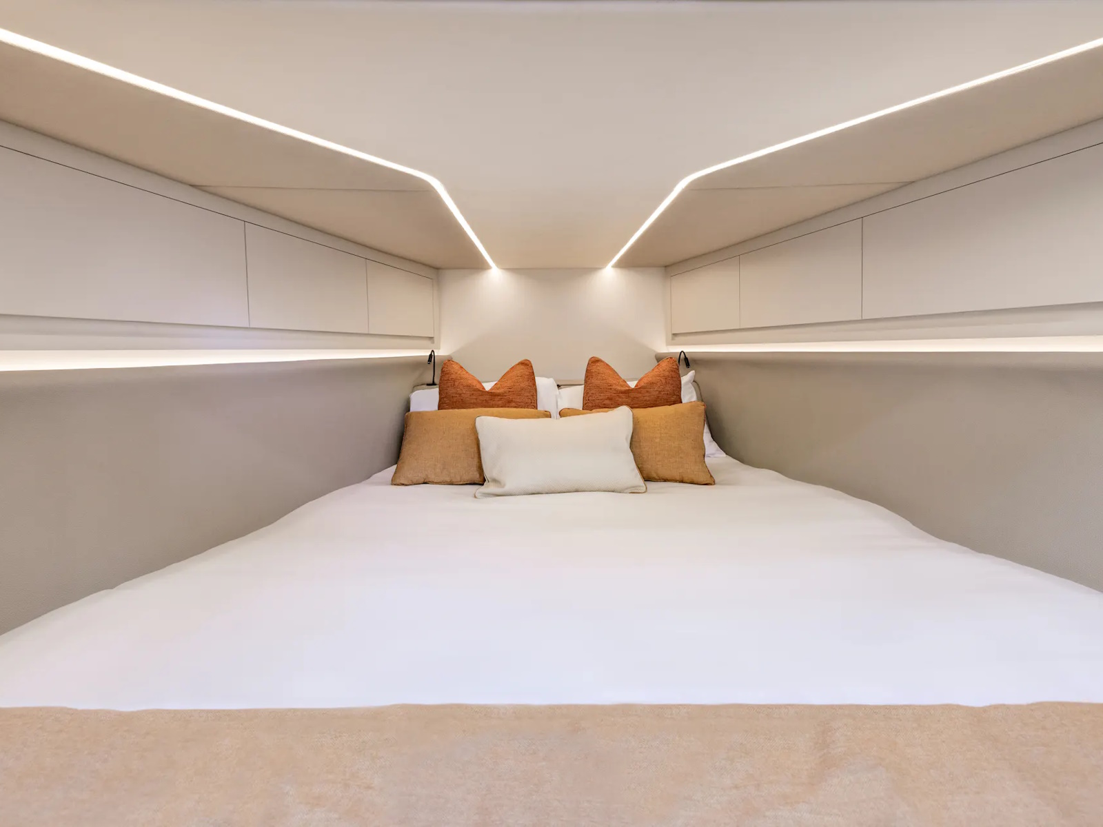 Each VQ55 Sports Line owner will enjoy the enhanced interior space, high level of comfort as well as long-distance travel capabilities. With two spacious cabins below decks, four people can zoom off the weekend or longer, with a smart on-deck galley complete with fridge, sink, and wine cooler. The finish of the interior as well as the exterior is exceptional.