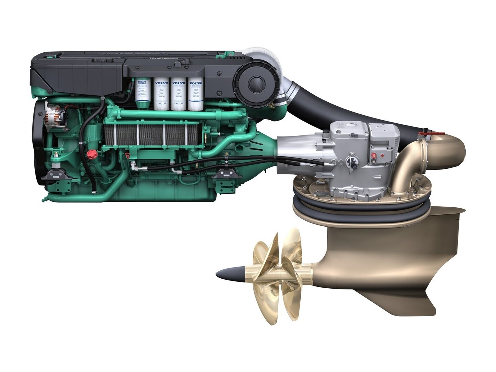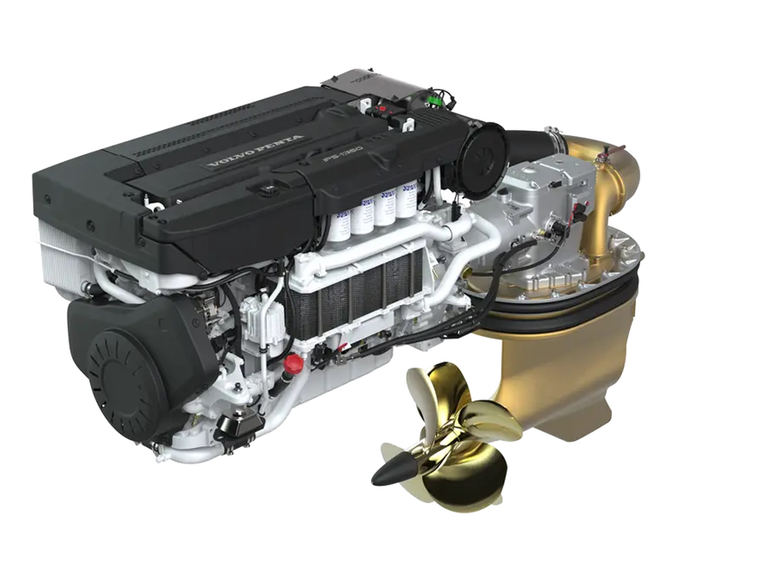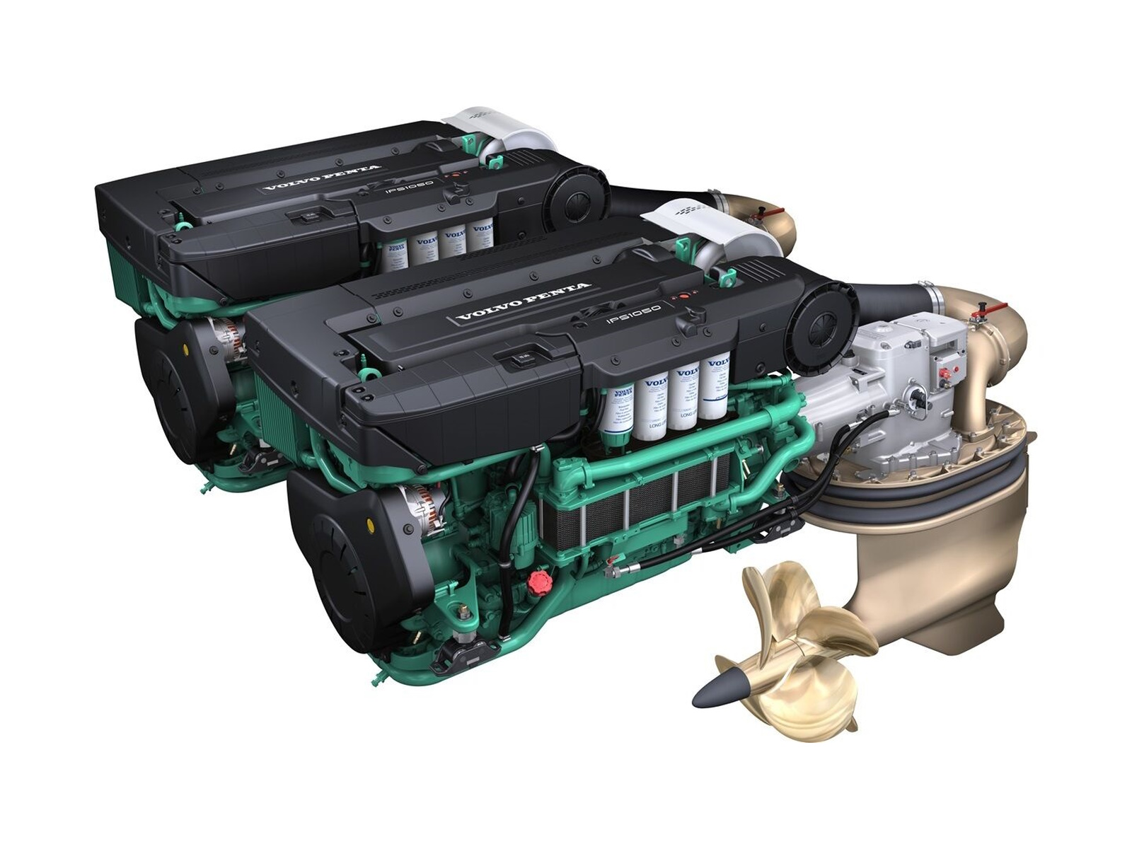 Volvo Penta D13-IPS was designed to deliver powerful performance, excellent maneuverability, unparalleled comfort on board, and longer range with less fuel consumption and emissions. The perfectly matched engine, transmission and drive - characterized by twin counter-rotating propellers - create an unmatched experience on the water. The robust engine was built to last with a rigid cast iron cylinder block and cylinder head, offering reliability and long-term durability. The entire package is integrated from helm to prop through the Electronic Vessel Control (EVC) with the option for experience-enhancing add-on features such as Glass Cockpit, cruise control and more.