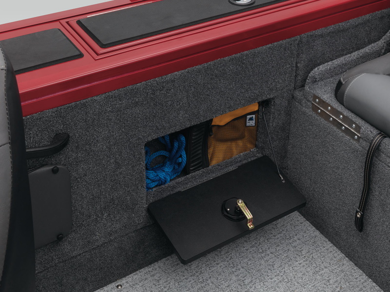 - Open storage compartment in bow panel